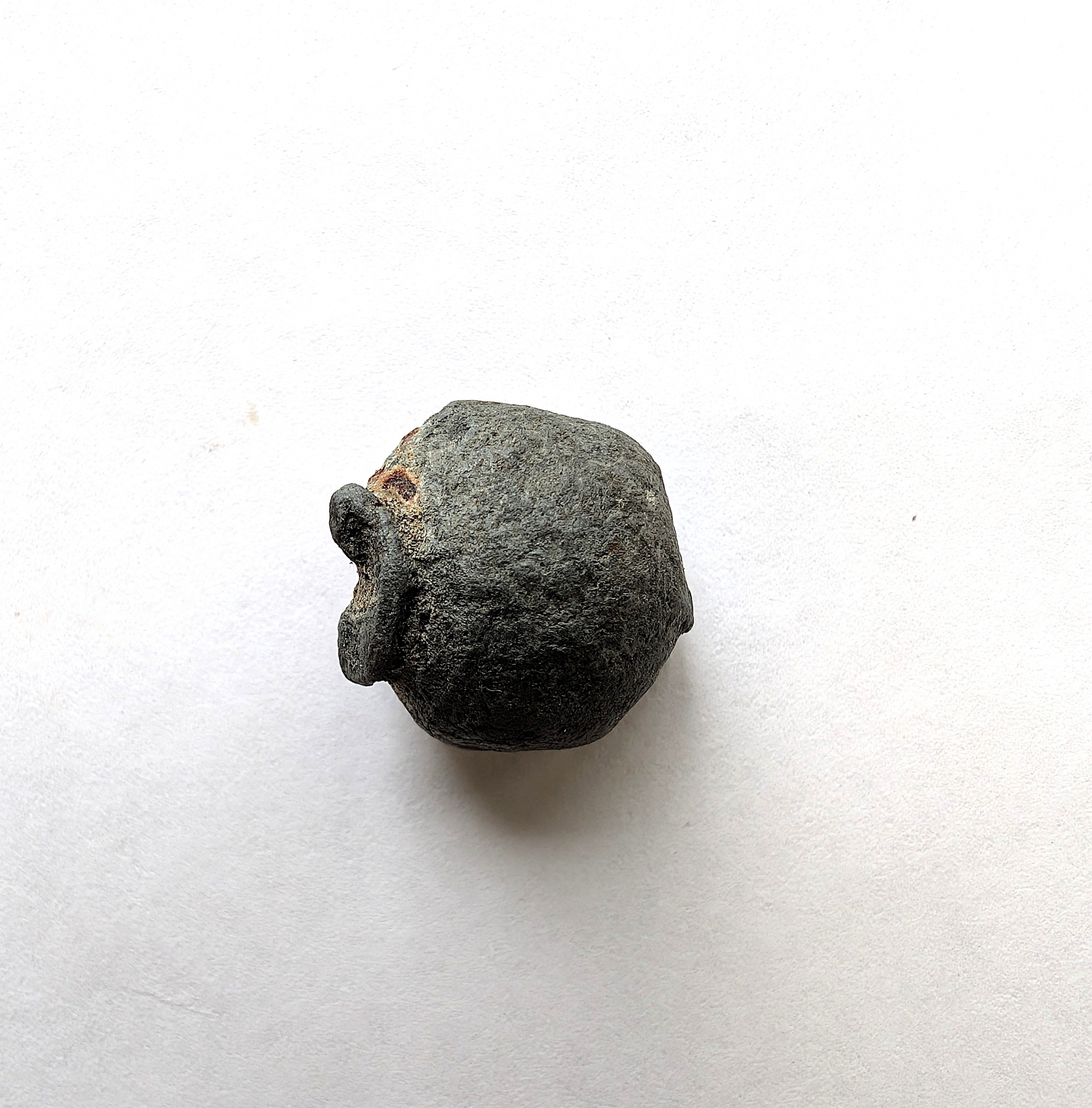 Glonte sferic din plumb, pentru arme de foc cu încărcare pe la gură. Glontele est distrus. Datează din perioada Imperiului Rus.