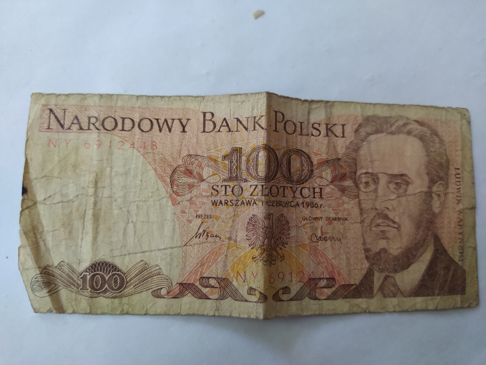 купюра- 100 Злотых, серийный номер № 46912448,Польша . Купюра - это бумажный денежный знак определенного достоинства, используемый в качестве средства платежа. Банкнота — это вид денежного знака, печатный документ определенного номинала, выпускаемый центральным банком страны и имеющий обязательную платежную силу на её территории. Данная банкнота производилась на специализированных предприятиях Гознака, для печати использовали специальную бумагу ,изготовлена из хлопковых волокон ,что обеспечивало ей прочность и устойчивость к износу.