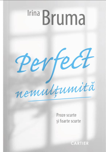 "Perfect nemulțumită" este o carte de proză scurtă și foarte scurtă, semnată de Irina Bruma, care explorează cu finețe trăirile, gândurile și contradicțiile interioare ale personajelor. Textele surprind momente de viață cotidiene, emoții intense și reflecții personale, adesea cu o notă de ironie sau melancolie. Coperta cărții are un design minimalist, cu un fundal alb-gri ce sugerează o fereastră neclară prin care intră lumină. Titlul este scris cu litere albastre, cuvântul „Perfect” având un font cursiv și elegant, iar „nemulțumită” este subliniat. În partea de jos apare subtitlul „Proze scurte și foarte scurte”, iar în colțul din dreapta jos este menționat editura Cartier.