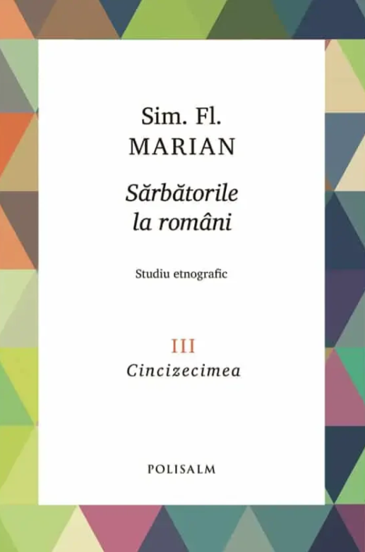 „Sărbătorile la români: Studiu etnografic. Vol. III” de Florea Marian reprezintă ultima parte a unei lucrări complexe dedicate sărbătorilor tradiționale din România. În acest volum, autorul se concentrează pe analiza detaliată a sărbătorilor mai puțin studiate sau mai puțin evidente, dar esențiale în viața comunităților rurale. Florea Marian explorează obiceiuri și ritualuri legate de diverse etape ale ciclului vieții (nașterea, căsătoria, moartea) și de schimbările din natură, dar și influențele externe asupra tradițiilor românești. Lucrarea oferă o perspectivă completă asupra modului în care sărbătorile reflectă structurile sociale, credințele și valorile românești, fiind o sursă esențială pentru studiile etnologice și pentru înțelegerea patrimoniului cultural al României. Coperta cărții are un fundal alb central încadrat de un model geometric colorat în nuanțe de verde, portocaliu, albastru și mov. În partea de sus este trecut numele autorului, Sim. Fl. Marian, urmat de titlul lucrării „Sărbătorile la români” și subtitlul „Studiu etnografic”. Mai jos este indicat volumul III cu titlul „Cincizecimea”. În partea de jos apare numele editurii Polisalm.