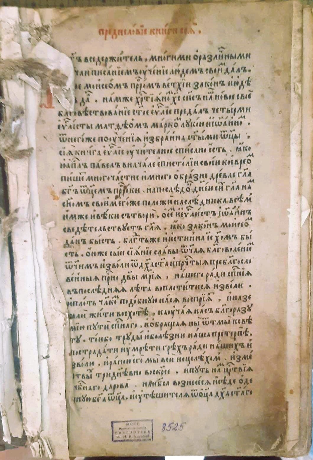 Pe penultima filă inscripție „Патриарха Филарета Никитича” [Patriarhul Moscovei și al Întregii Rusii Filaret (1553 – 1633), tatăl țarului Mihail Fedorovici]. Pe ultima filă insemnare: „Государя Царя Михайла Феодоровича вся Руси Самодержаца” [Mihail Fedorovici - primului țar din dinastia Romanov]. Pe al doilea forzaț însemnare: „Достойно есть яко войстину блажити тя Бцɛ (Богородице) присноблаженною”.Fragment din rugăciunea de proslăvire a Maicii Domnului „Достойно есть”, specifică cultului ortodox.