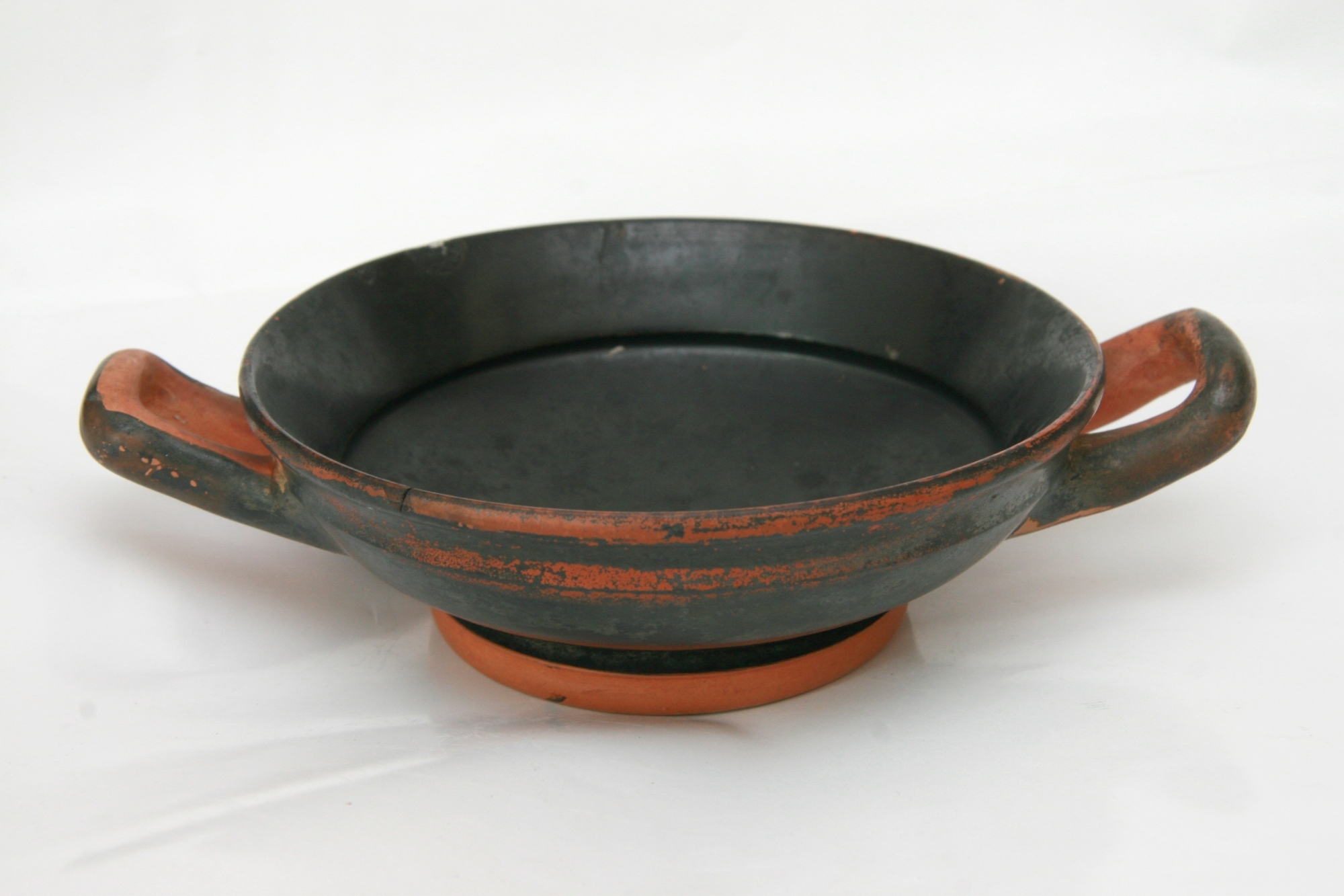 Vas antic, de forma unei cupe adîncite, așezat pe o bază circulară, prevăzută cu două mînere pătrate dispuse simetric. Suprafața vasului este acoperită cu glazură neagră, marginal superior și inferior avînd spații sub formă de benzi, lăsate libere.