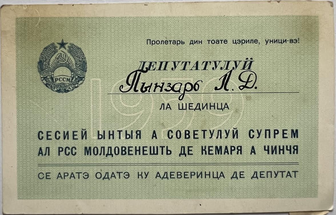 Invitație-mandat a deputatului Pînzari Lidia, care este invitată la Ședința Sesiei Întâia a Sovietului Suprem al RSSM de Chemarea a V-a. Aceasta ”se arată o dată cu adeverința de deputat”.