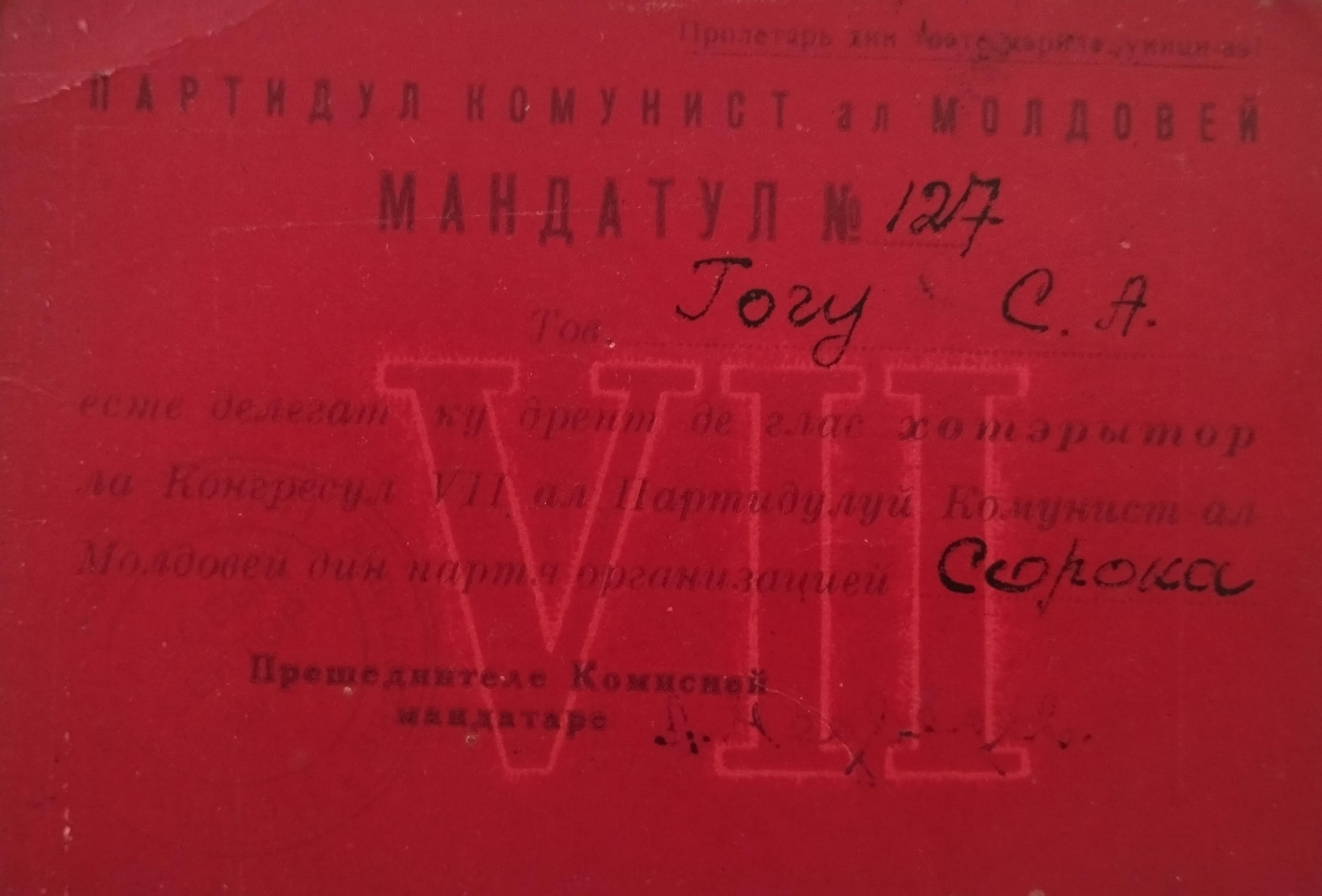 Mandatul nr.127 al deputatului Gogu Simion Alexandru ședinței VII al partidului comuniștilor din Moldova
