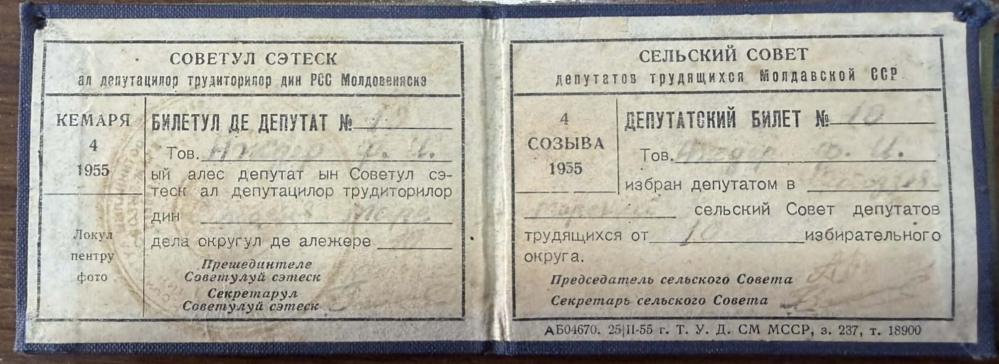 Buletin de deputat al Sovietului Sătesc Nr. 10