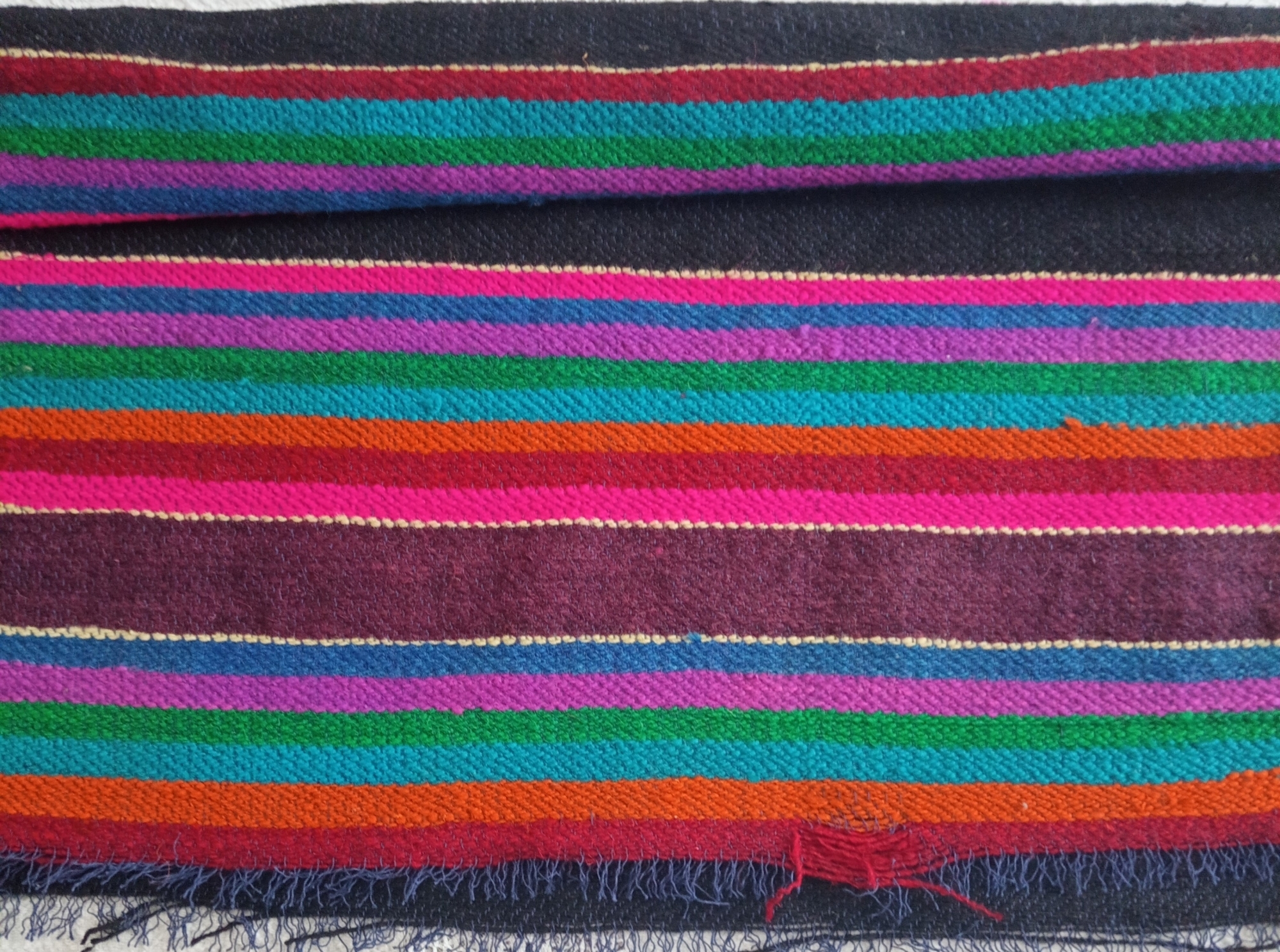 Țesut în război orizontal (stative), forma dreptunghiulară, cu două fețe, urzeala ață, băteala lână. Este țesut în scaune din lână de culoare neagră, având de ambele părți țesute câte un fir de culoare albă și scaune late din două registre de dungi policrome uniforme, în mijloc fiind o fâșie comună lată de culoare bordo, împrejmuită la fel de am,bele părți cu un fir de culoare albă. La capete franjuri scurte.