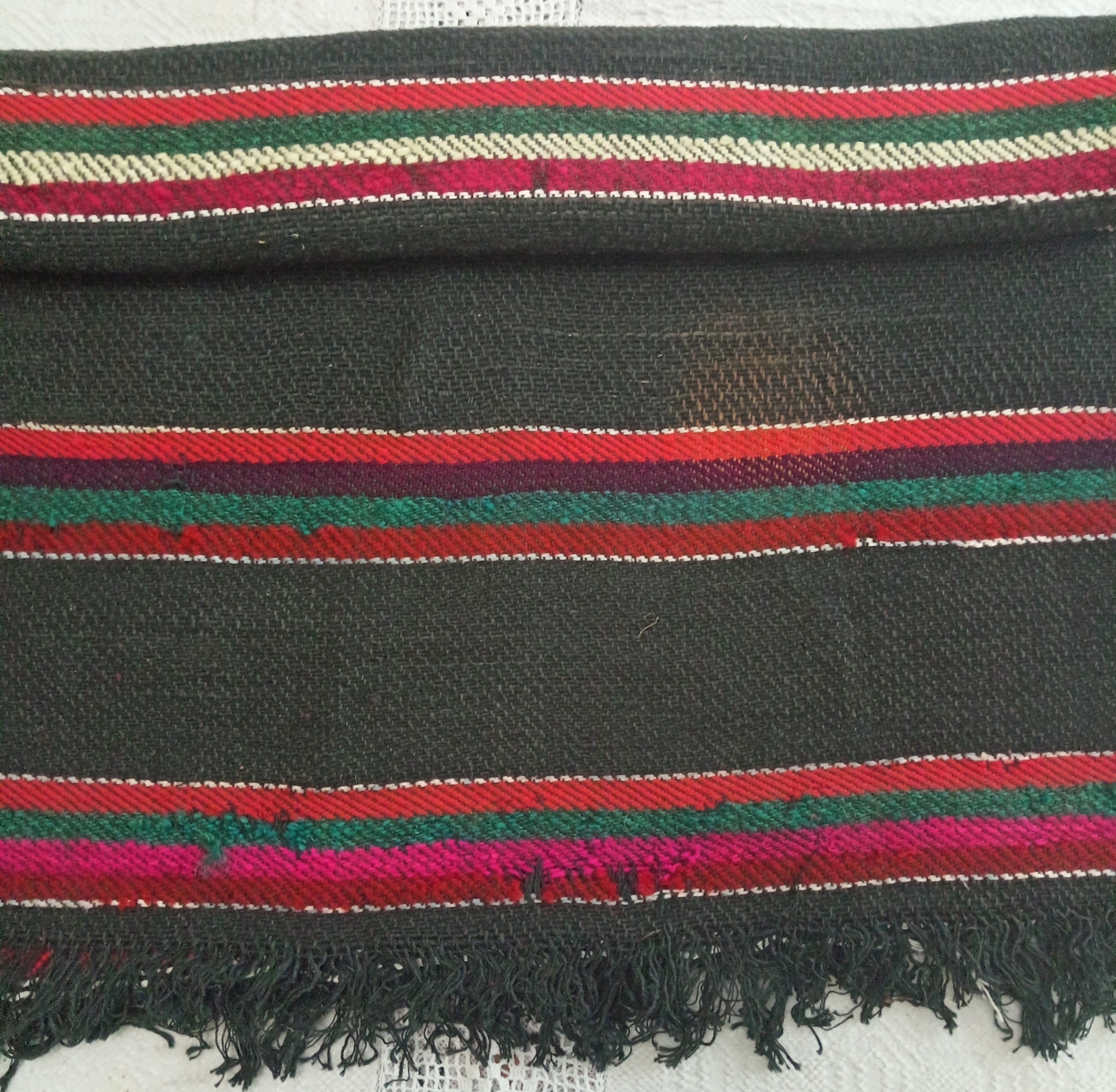 Țesut în război orizontal (stative), forma dreptunghiulară, cu două fețe, urzeala ață, băteala lână. Este țesut în scaune din lână de culoare neagră, la ambele laturi fiind țesut câte un fir de culoare albă și în scaune din patru dungi uniforme policrome. La capete franjuri. Se folosea ca așternut pe scaune (osloane) și pe jos la podea. Cromatica: roz, bordo, roșu aprins, verde, alb, negru.