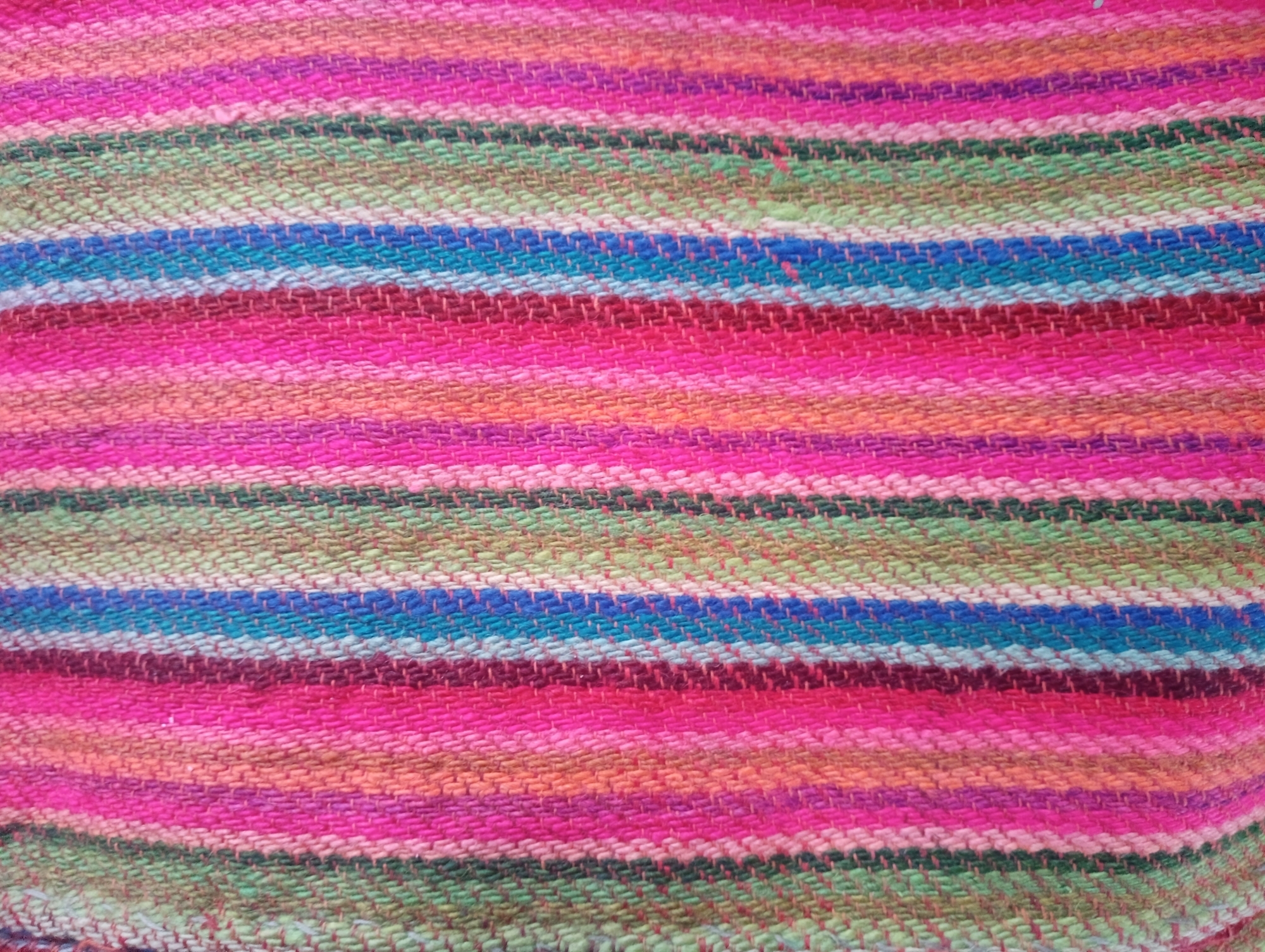 Țesut în război orizontal (stative), forma dreptunghiulară, cu două fețe, urzeala ață, băteala lână. Este țesut pe toată suprafața în dungi uniforme policrome, care sunt separate la un număr anumit de dungi cu câte un fir, astfel împărțindu-le în scaune policrome. La capete tivit.