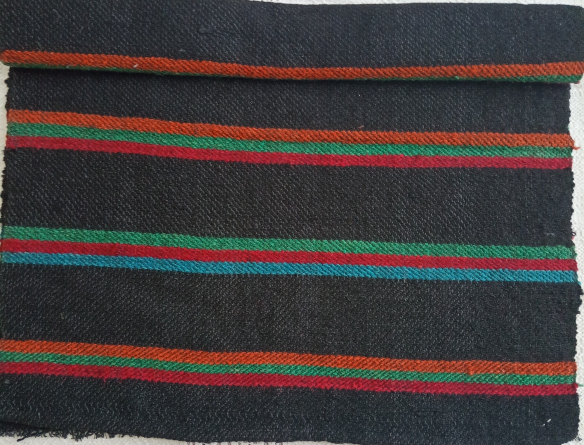 Țesut în război orizontal (stative), forma dreptunghiulară, cu două fețe, urzeala ață, băteala lână. Este țesut în scaune din lână de culoare neagră și scaune din registre înguste a câte trei dungi policrome. La capete tivit.