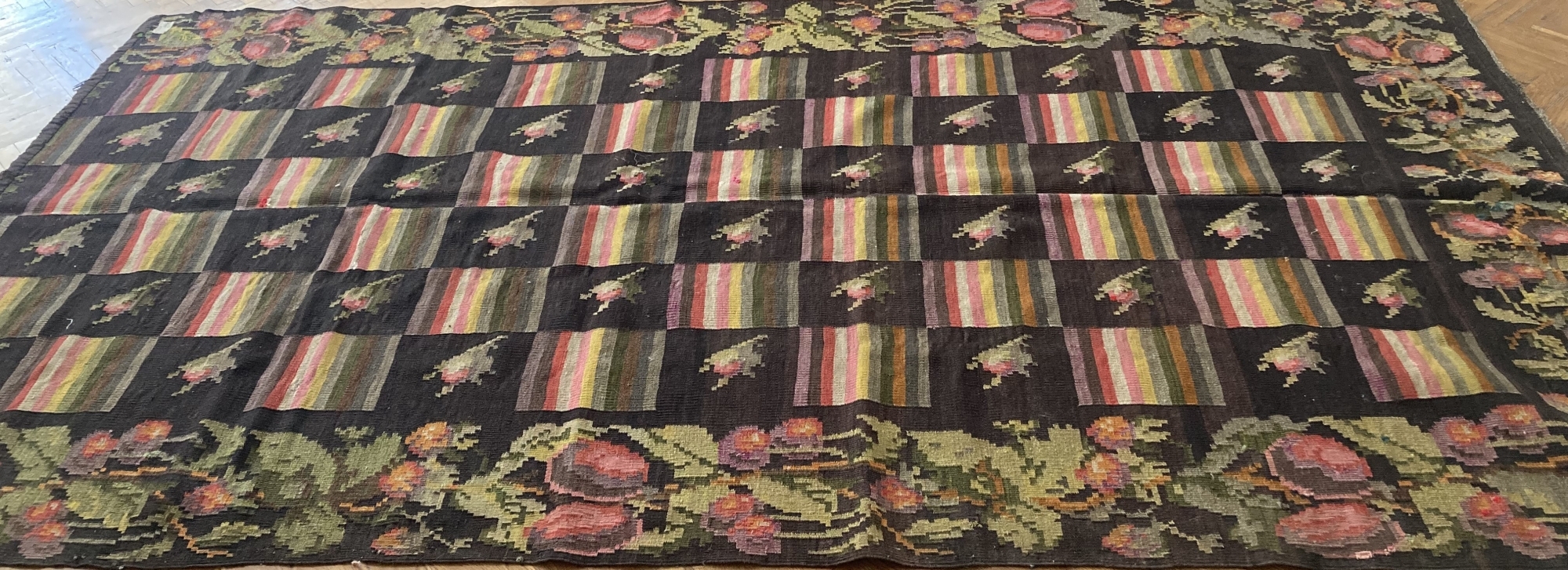 Urzeală – , beteală – lână. Țesut în stative, orizontal, cu 2 fețe. Câmpul piesei prezintă: ornament cadrilat format din registre cu vrâste policrome a câte 11 vrâste în fiecare registru (ornament liniar cu motiv geometric), țesute paralel cu lățimea piesei și ornament floral „Flori” („Bubușlui”) - 36 la număr. Chenarul piesei din 3 părți, 2 capete longitudinale și 1 capăt latitudinal, ornamentat cu motiv vegetal floral: „Flori”, („Floarea pepenelui verde”), dispus în lanț. La capătul latitudinal al piesei, unde lipsește chenarul (practic lipsește 1 fragment al piesei) - cusută căptușeală, ca să nu se destrame țesătura piesei. Cromatică: negru, portocaliu, roz, roșu, 2 nuanțe de verde, cafeniu, alb, gri, mov, galben.