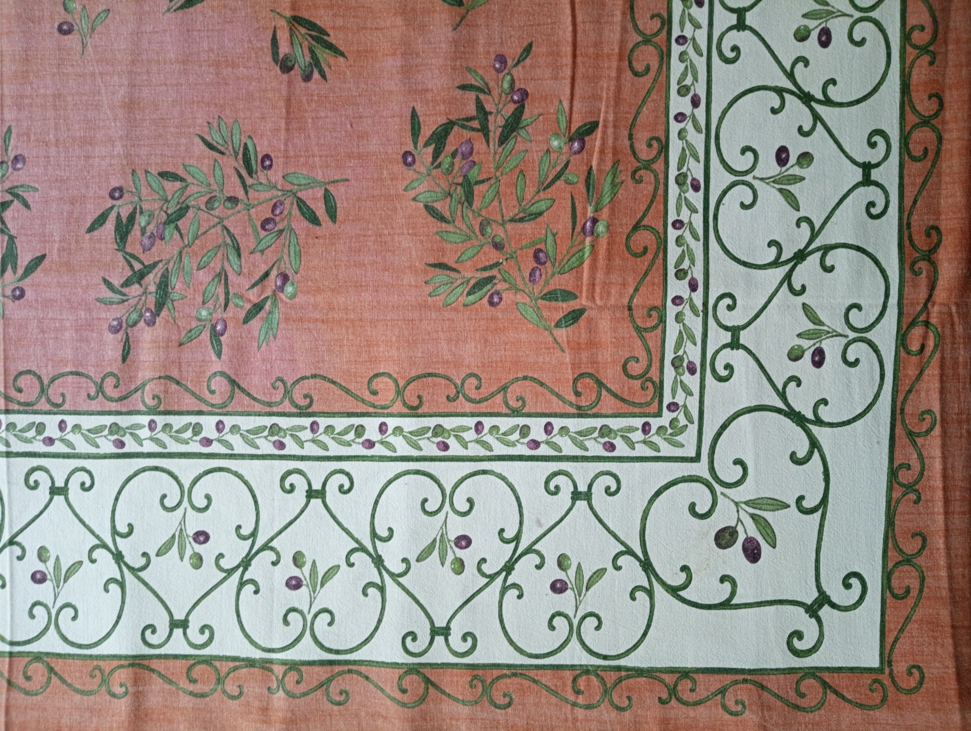 Țesută în condiții de fabrică, forma dreptunghiulară, coton, culoarea cafeniu pe margine cu elemente decorative, apoi culoare albă bordura lată pe toate laturile, cu elemente decorative în interior având elemente vegetale, pe câmpul central iarăși culoare cafenie cu elemente decorative de-a lungul tuturor laturilor iar pe restul câmpului elemente vegetale. La capete tivit.