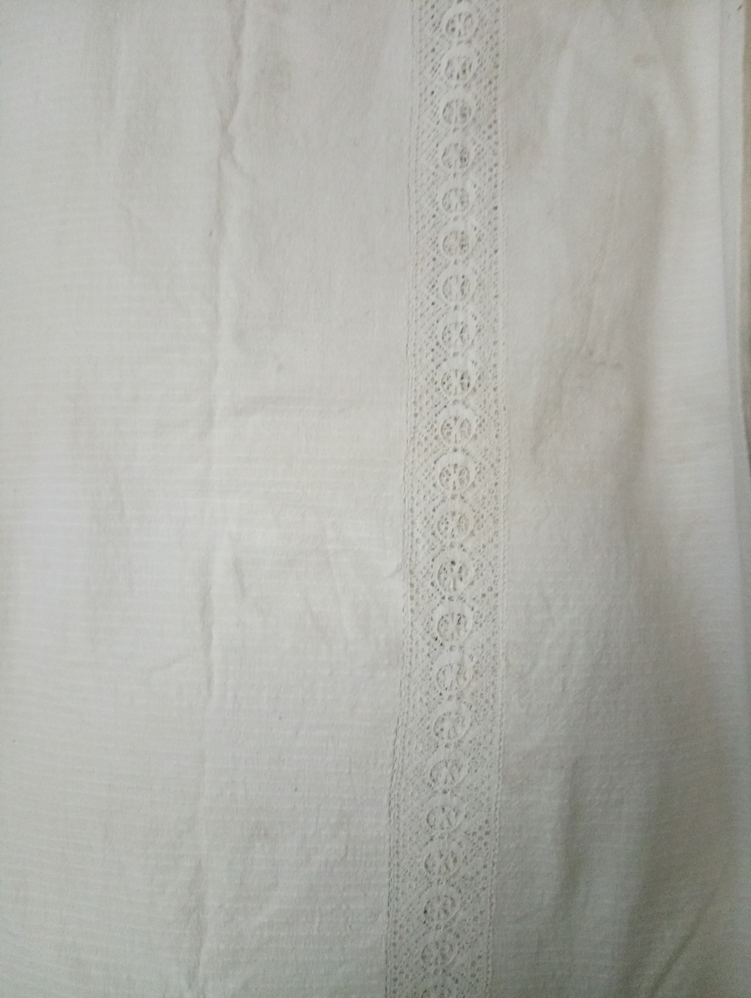 Țesută în condiții de fabrică, forma dreptunghiulară, din pânză de in, fiind alcătuită din două bucăți, separate de o dantelă (horboțică) din mătasă croșetată în condiții de fabrică, cu elemente geometrizante.
