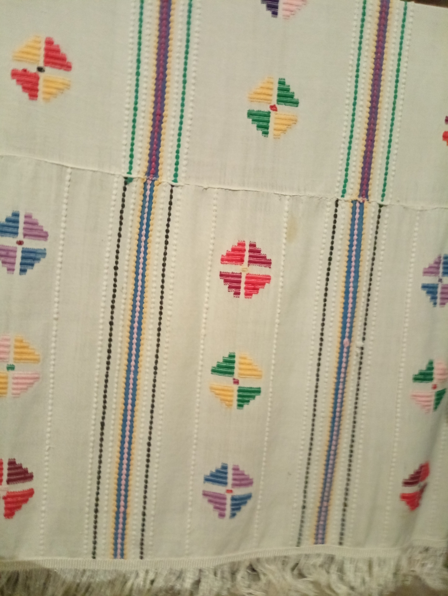 Țesută în condiții casnice, în stative orizontale, din pânză de bumbac, fiind alcătuită din trei bucăți, câmpul cărora sunt țesute cu elemente de pe prosoape - miezul de nucă, lănțișoare ață albă și vrâste din lănțișoare policrome. La capetele laterale tivită, iar la o latură longitudinală cusută o dantelă cu franjuri din mătasă .