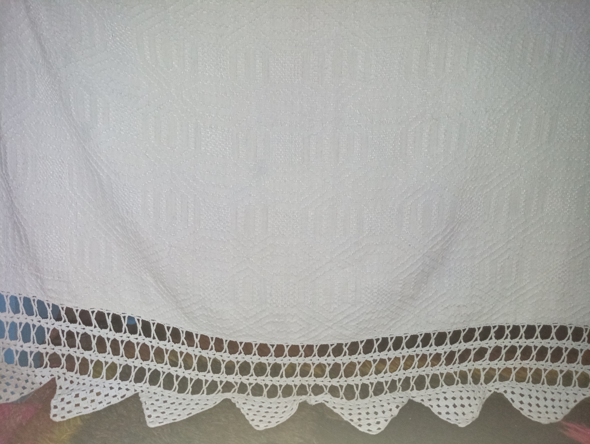 Țesută în condiții casnice, în stative orizontale, din pânză de bumbac, fiind alcătuită din două bucăți, câmpul cărora sunt țesute cu elemente geometrice - dreptunghiuri, hexagoane, iar între ele fiind cusută o dantelă (horboțică) croșetată manual, cu elemente geometrizante - pătrățele mici și motive florale geometrizante. La trei capete tivită și la un capăt longitudinal cu dantelă croșetată cu elemente geometrizante, cu marginea triunghiuri.
