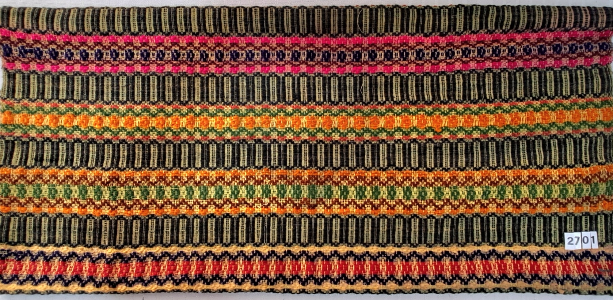 Țesătură tradițională moldovenească, țesută la stative în 4 ițe , pe urzeală de bumbac negru, băteală din fir de cânipă. Compoziție ornamentală pe toată suprafața pesei, formată din vârste de diferite culori cu ornament geometrizant , dispuse succesiv prin alternanță, formând un decor geometric. Cromatică; roș,verde, oranj, negru, violet, galben.