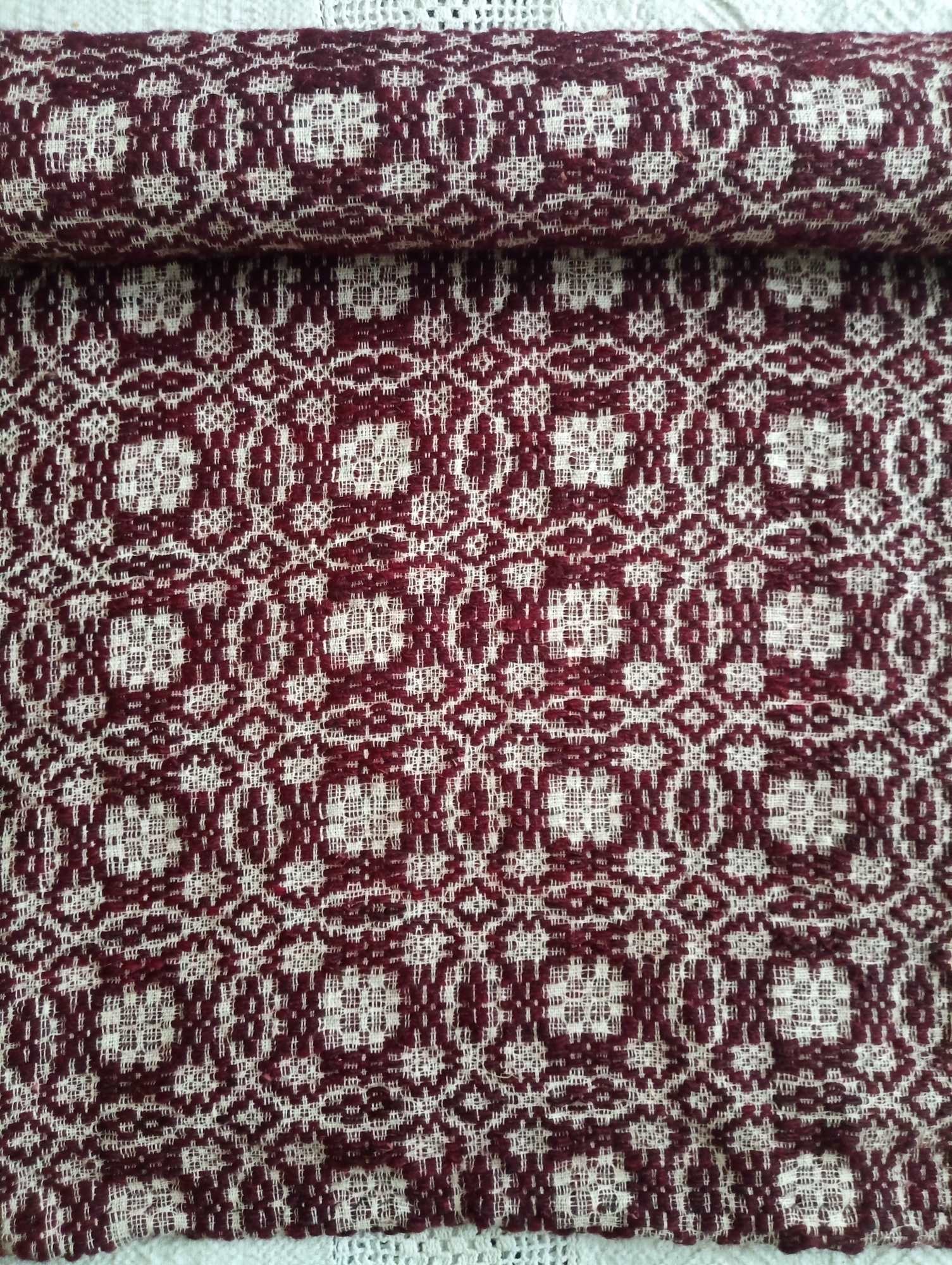 Țesut în război orizontal (stative), forma dreptunghiulară, cu o față, urzeala ață, băteala lână. Câmpul piesei este țesut cu ornamente geometrice - sfere, dreptunghiuri, precum și elente florale geometrizate, dispuse simetric prin alternanță. La capete tivit.