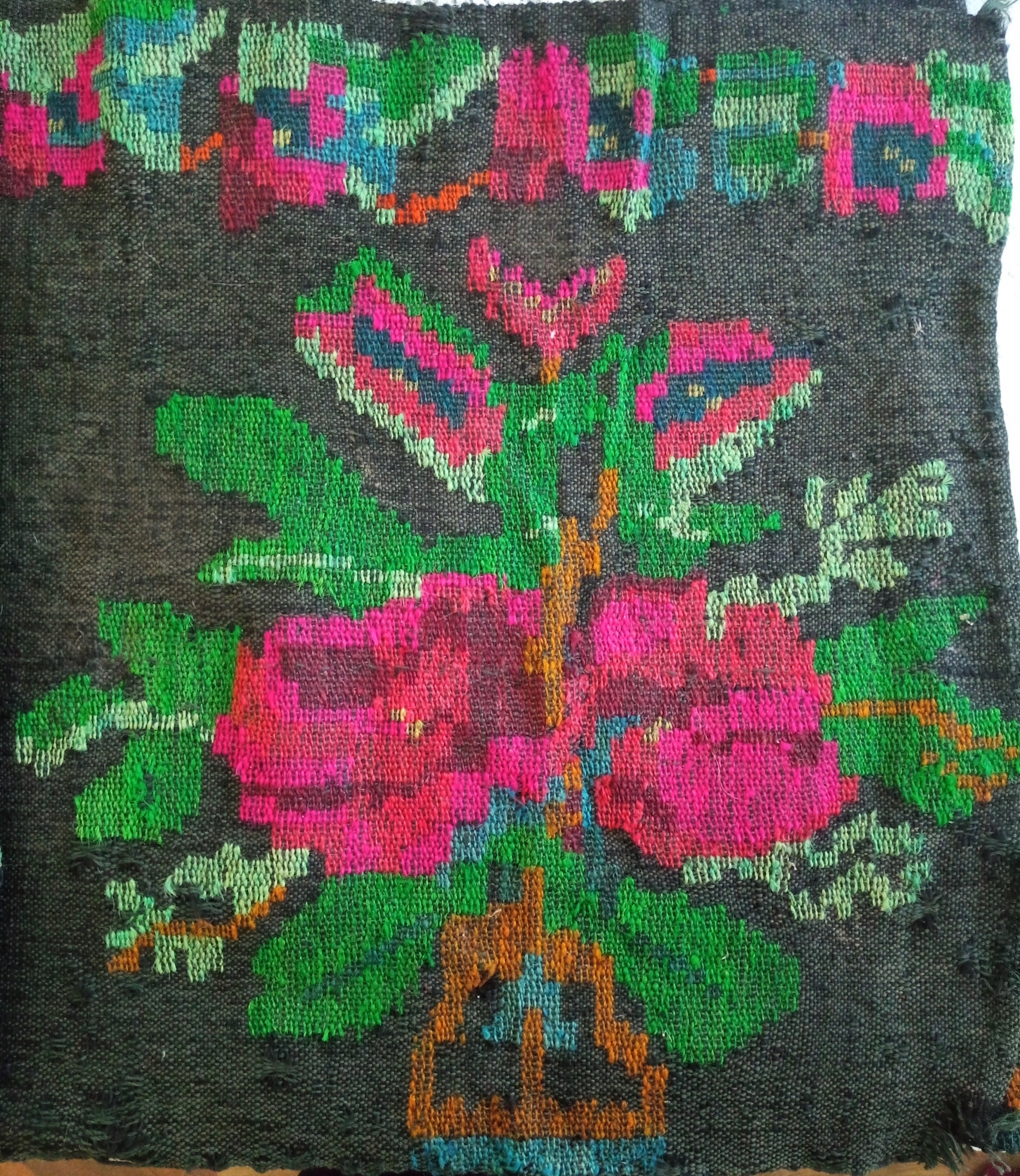 Țesut în război orizontal (stative), forma dreptunghiulară, cu două fețe, urzeala ață, băteala lână. Câmpul piesei monocrom este țesut cu motive fitomorfe, cu chenar fitomorf. La capete tivit.
