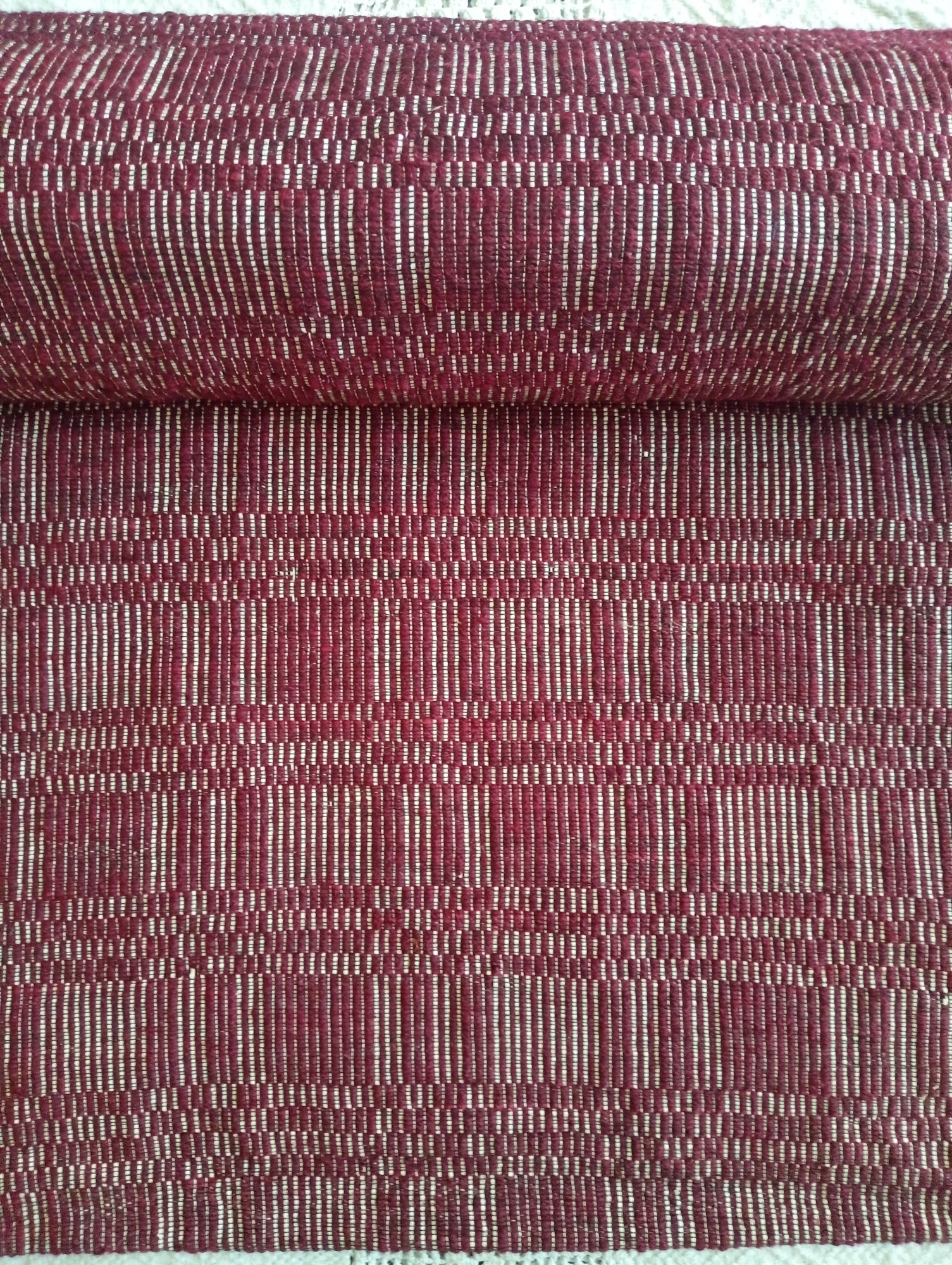 Țesut în război orizontal (stative), în 2 ițe, forma dreptunghiulară, cu două fețe, urzeala ață, băteala lână. Câmpul piesei este țesut cu ornamente geometrice - patrate, dreptunghiuri, dispuse simetric prin alternanță, prin metoda întretăierii firelor de urzeală cu cele de băteală . La capete tivit.