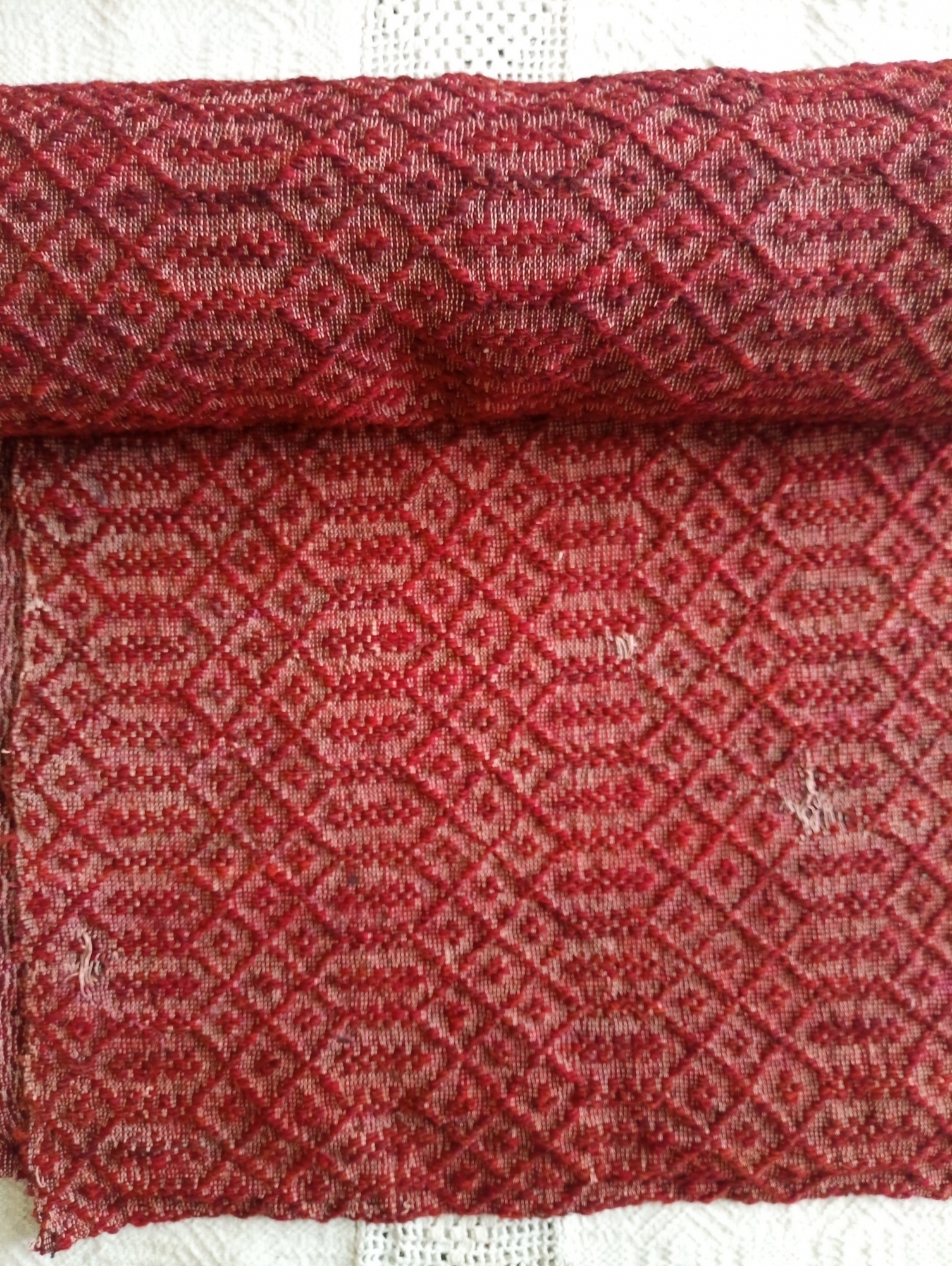 Țesut în război orizontal (stative), forma dreptunghiulară, cu o față, urzeala ață, băteala lână. Câmpul piesei este țesut cu ornamente geometrice - patrate, romburi țesute vertical, în interiorul cărora este țesut elementul - crucea, hexagoane, dispuse simetric prin alternanță, prin metoda întretăierii firelor de urzeală cu cele de băteală . La capete tivit.