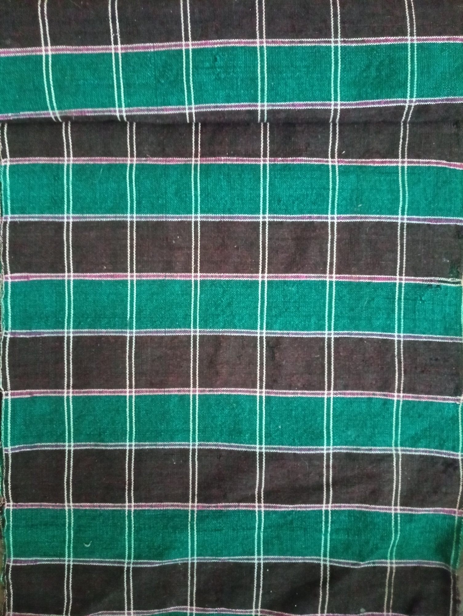 Țesut în război orizontal (stative), forma dreptunghiulară, cu două fețe, urzeala ață, băteala lână. Câmpul piesei este țesut în carouri, în două culori, întretăiate cu câte două fire albe, atât pe vertical, cât și pe orizontal. Rândurile pe orizontal și vertical sunt dispuse simetric prin alternanță. La un capăt tivit.