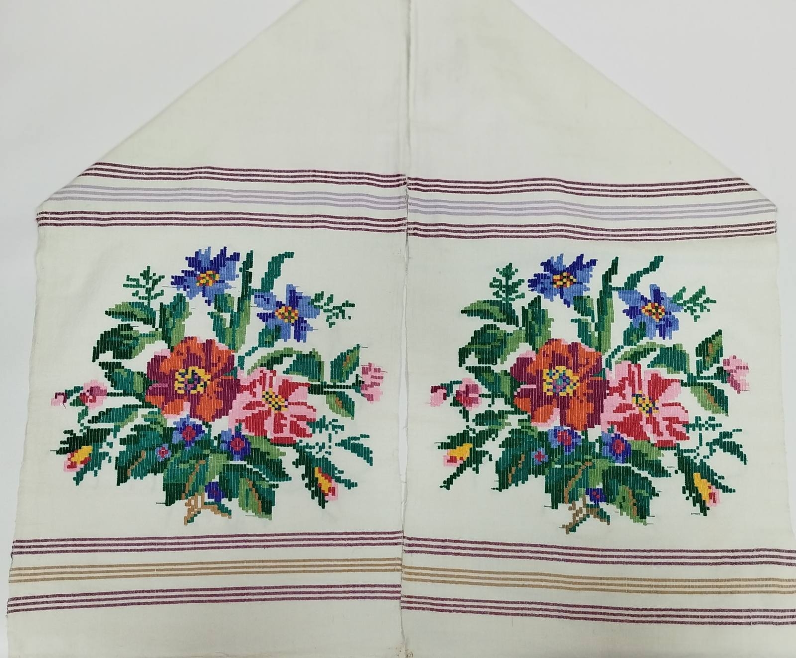 Formă dreptunghiulară dintr-o singură bucată, ornamentat la ambele capete cu vrâste de culori diferite. Ales printre ițe, ales cu speteaza. Între vrâste e ornamentat cu motive florale, dispuse sub formă de un buchet de flori. Cromatica: vișiniu, violet de nuanță deschisă, verde de nuanță diferită, roșu de nuanță diferită, albastru de nuanță diferită, roz, maro nuanță deschisă, galben.