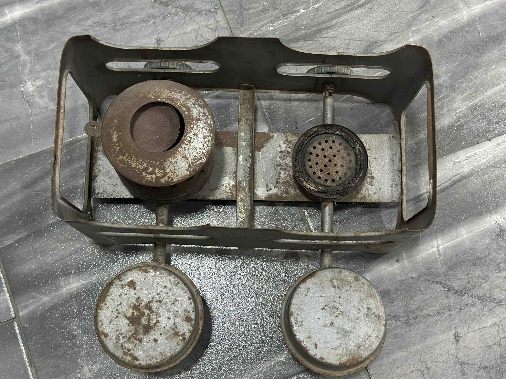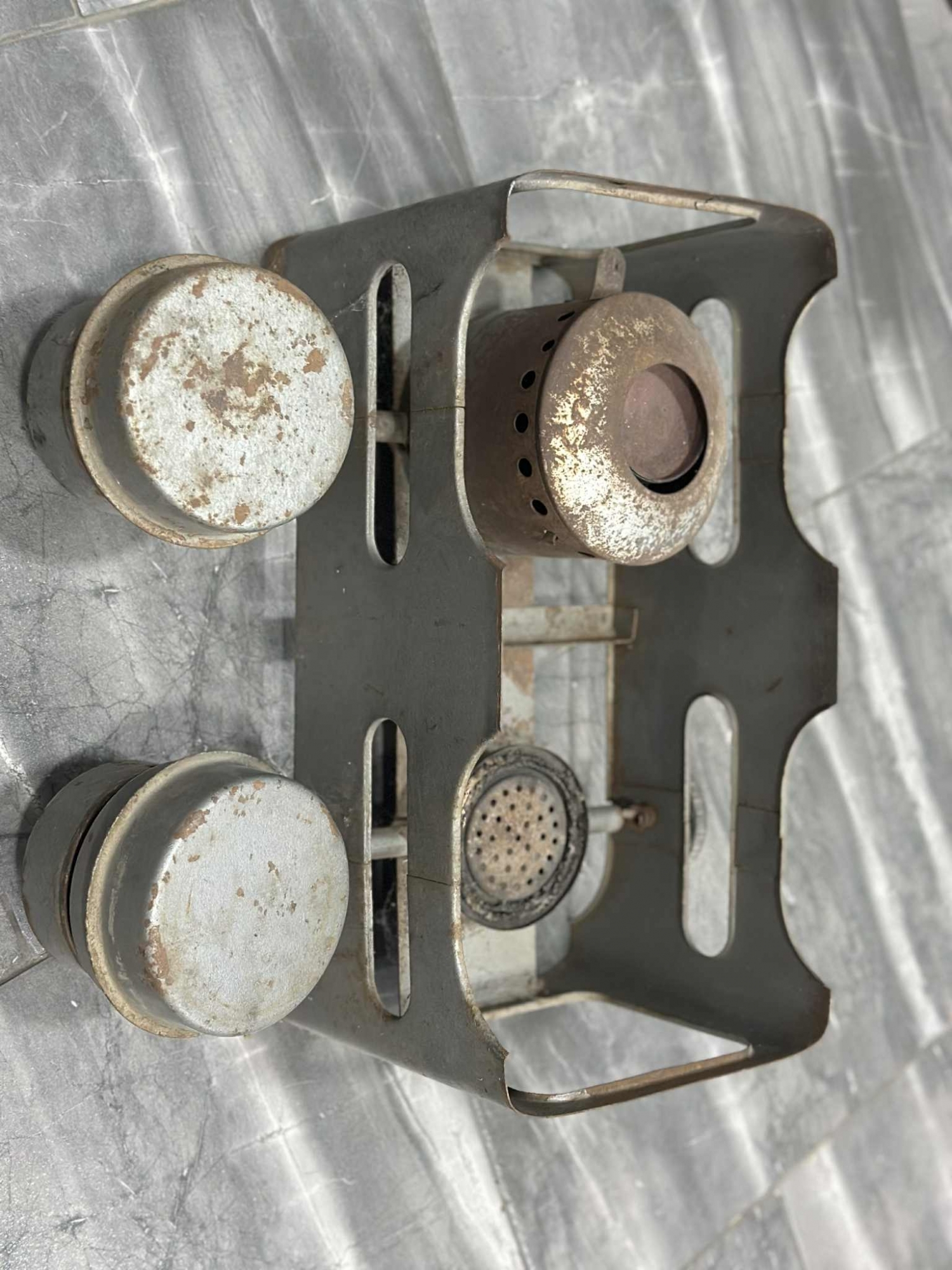 Unul dintre arzătoare este protejat de un capac perforat, având rolul de a distribui căldura uniform și de a proteja flacăra de vânt. Celălalt arzător este simplu, cu orificii multiple pentru degajarea flăcării.