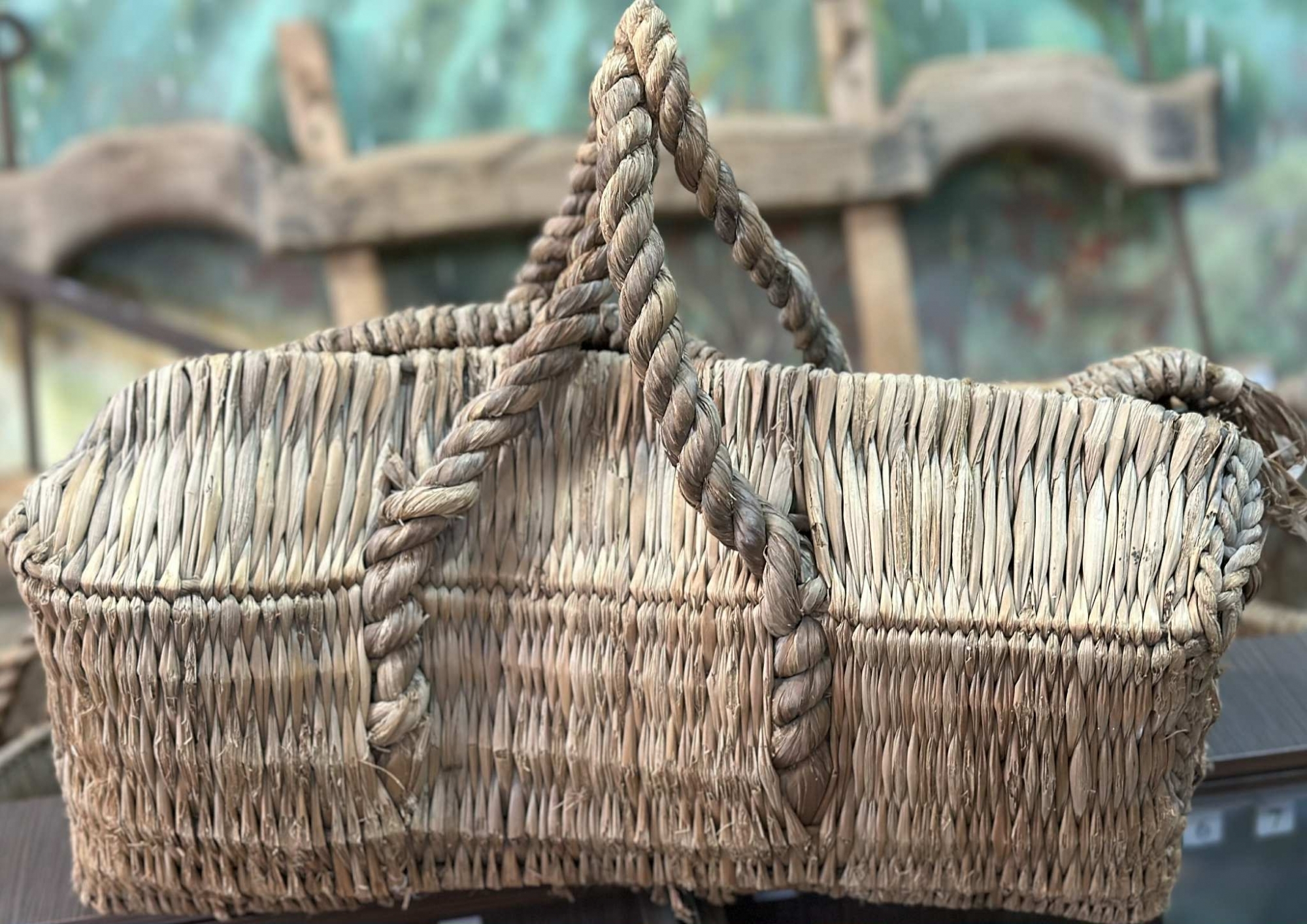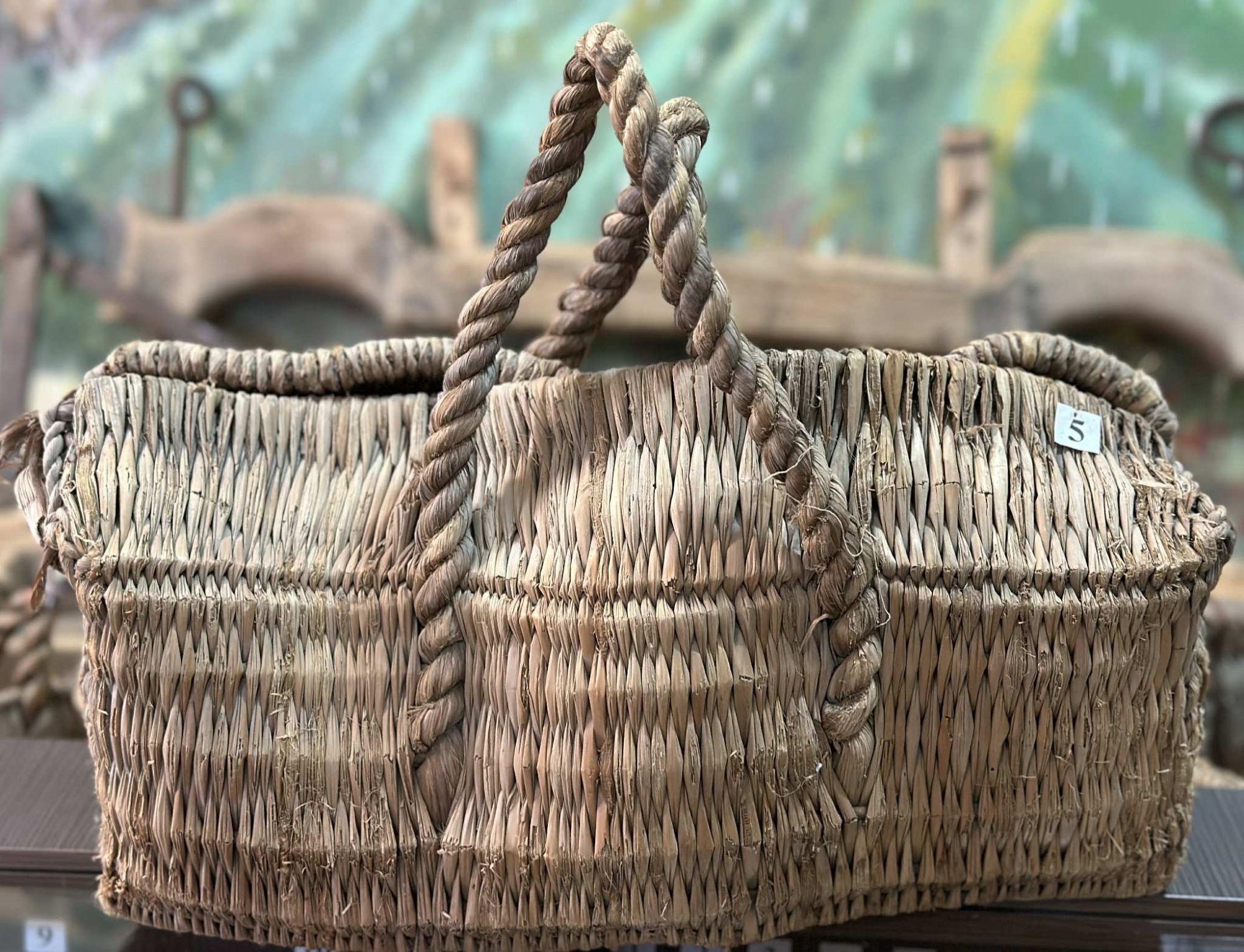 Coș de formă dreptunghiulară, cu pereți înalți și margini rotunjite, realizat prin împletirea paielor. Dispune de două mânere răsucite, fixate de corpul coșului. Obiectul era utilizat pentru transportul cumpărăturilor, sau păstrarea textilelor în călătoriile lungi. Împletitura densă și rezistentă asigură durabilitatea obiectului și îl face potrivit pentru diverse întrebuințări.