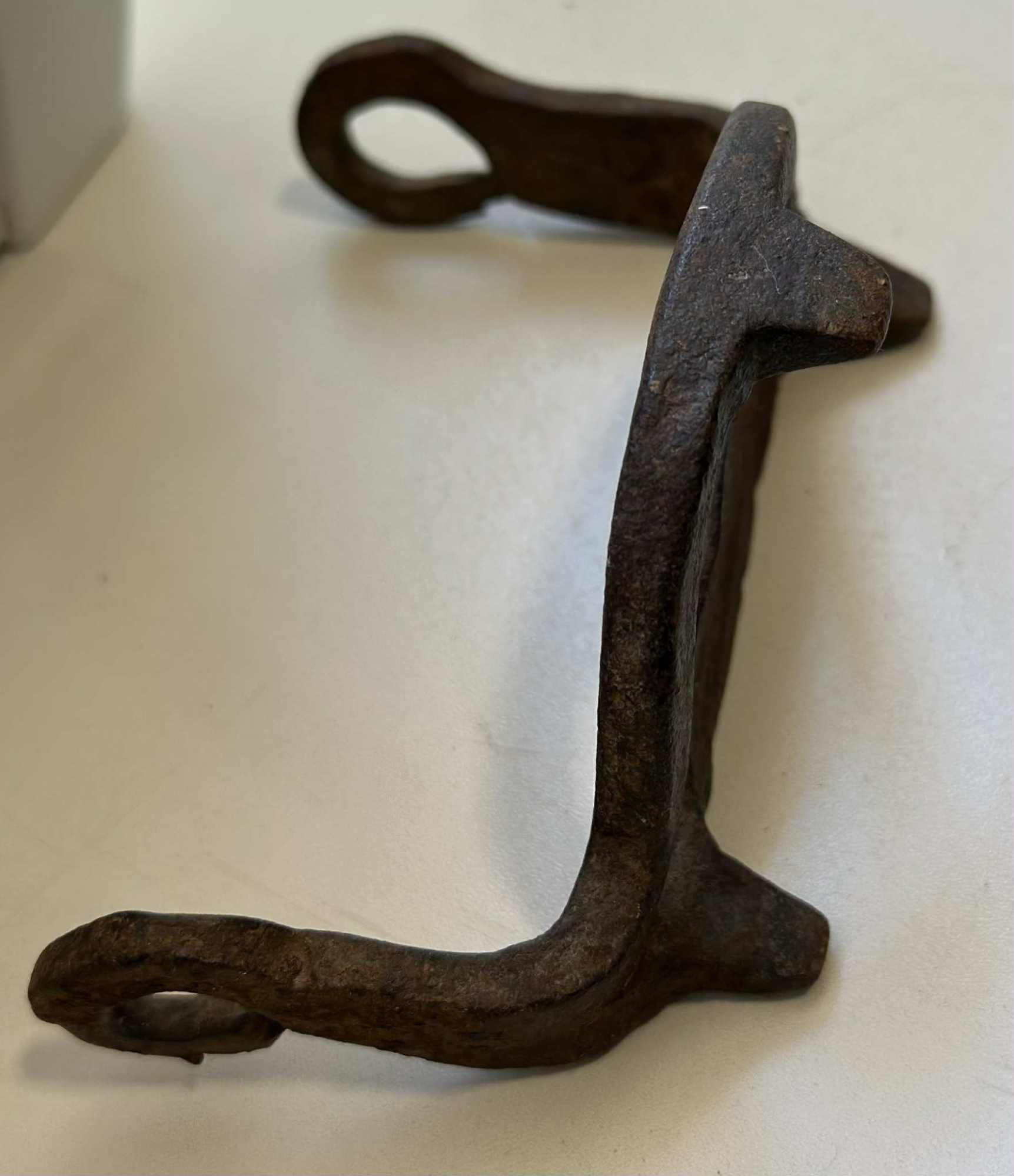 Obiect masiv, confecționat manual prin forjare la cald. Prezintă o formă curbată, adaptată copitei, cu extremități ușor ridicate și o proeminență centrală menită să asigure aderență. Pe suprafața exterioară a potcoavei are trei pinteni care ajută la prinderea și stabilitatea animalului, întrînd în suprafața pe care se deplasează (pământ, zăpadă, gheață). La capete are orificii pentru fixarea cuielor de potcovit. Suprafața este oxidată, specifică obiectelor vechi din metal.