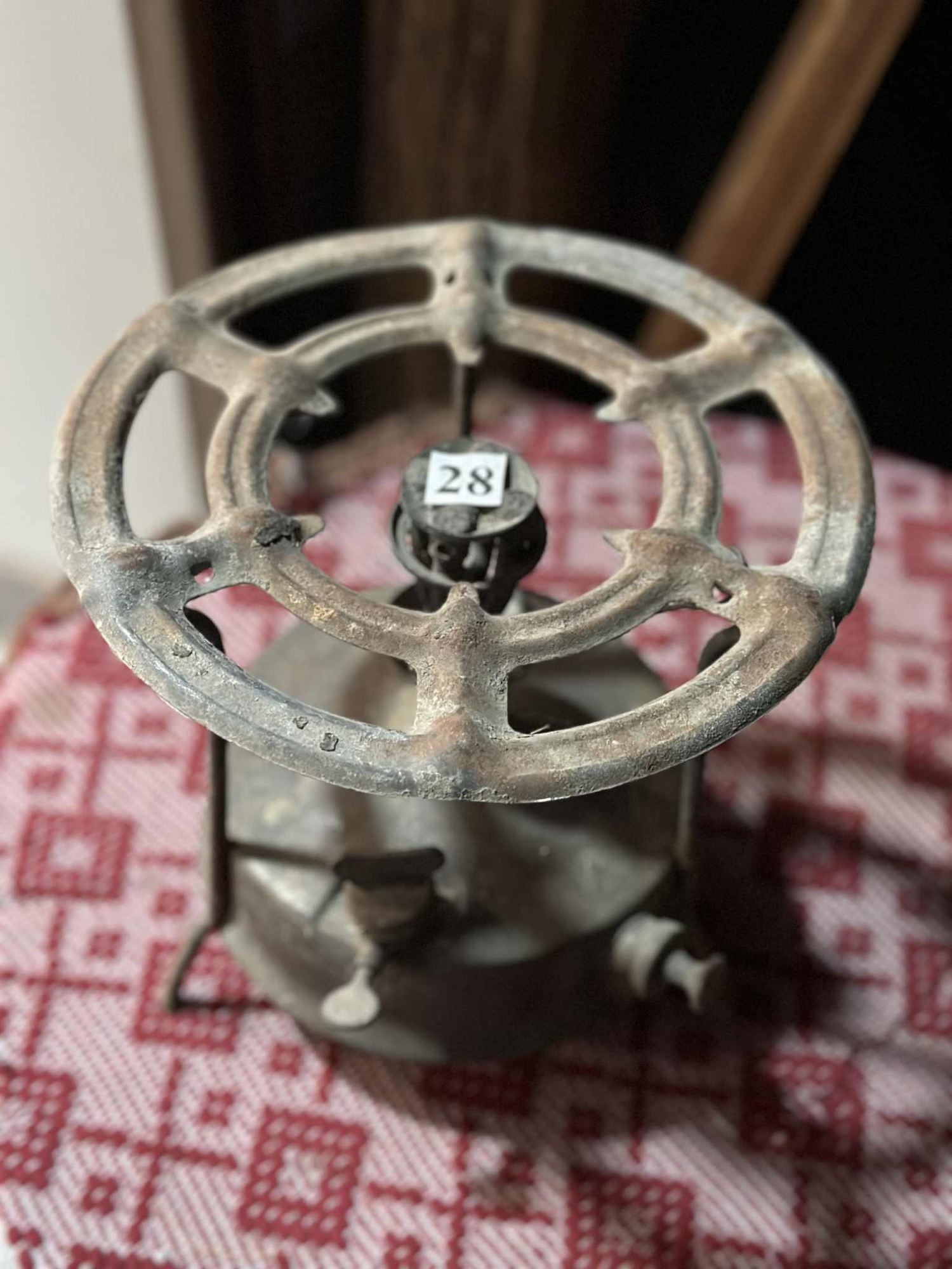 Aparat metalic portabil utilizat pentru gătit sau încălzire, funcționând pe bază de combustibil lichid (benzină sau petrol). Este alcătuit dintr-un rezervor pentru combustibil, un arzător montat deasupra și un suport pentru vase. Presiunea internă este creată manual, iar flacăra este reglată cu ajutorul unui robinet. Corpul este confecționat din metal, având o formă rotundă la bază și trei picioare subțiri care susțin grătarul superior. Primusul era folosit frecvent în gospodării, la drumuri sau lucrări în aer liber, fiind apreciat pentru eficiența și portabilitatea sa.