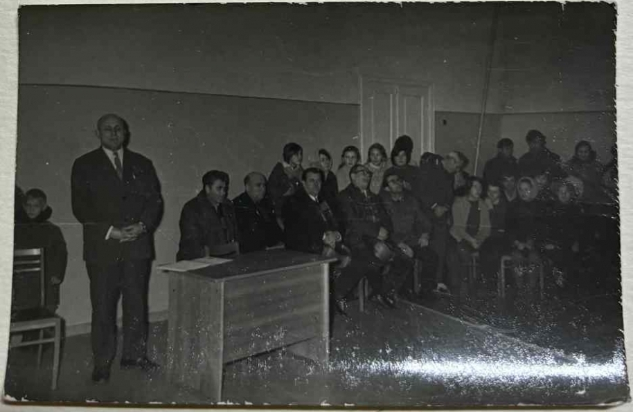 Discursul profesoarei Ș M N 1- Șincariuc M.I la deschiderea sălii sportive în Ș M N1. În imagine mulțime de elevi și profesori ce stau pe scaune și ascultă discursul.