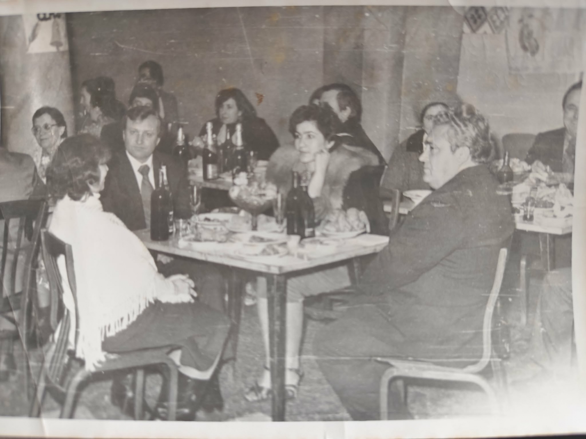 Fotografia alb negru prezintă grupuri de persoane așezate la mase dreptunghiulare, participînd la balul de absolvire. În prim plan la masa centrală ,de la dreapta la stînga sunt Ivașcu Nicolae- secretar de partid a colhozului Moldova, Saghin Elena- medic pediatru, Saghin Dumitru- președintele colhozului Moldova. Bărbații poartă costume clasice cămașă albă și cravată. Saghin Elena poartă o haină de blană și își sprijină bărbia în mână, privind spre dreapta cadrului și poartă sandale cu baretă, vizibile sub masă. Î spate la o altă masă sunt Zidrașco Vera- medic șef, Cojocaru Ludmila- profesoară de limba română, Zberea Ana- soră medicală, Zberea Iacob- conducătorul brigăzii Nr. 3. Pe mase se observă mai multe sticle și pahare înalte, farfurii cu gustări, platouri și un bol mare cu fructe. Activitatea are loc în cantina școlii medii din localitate.
