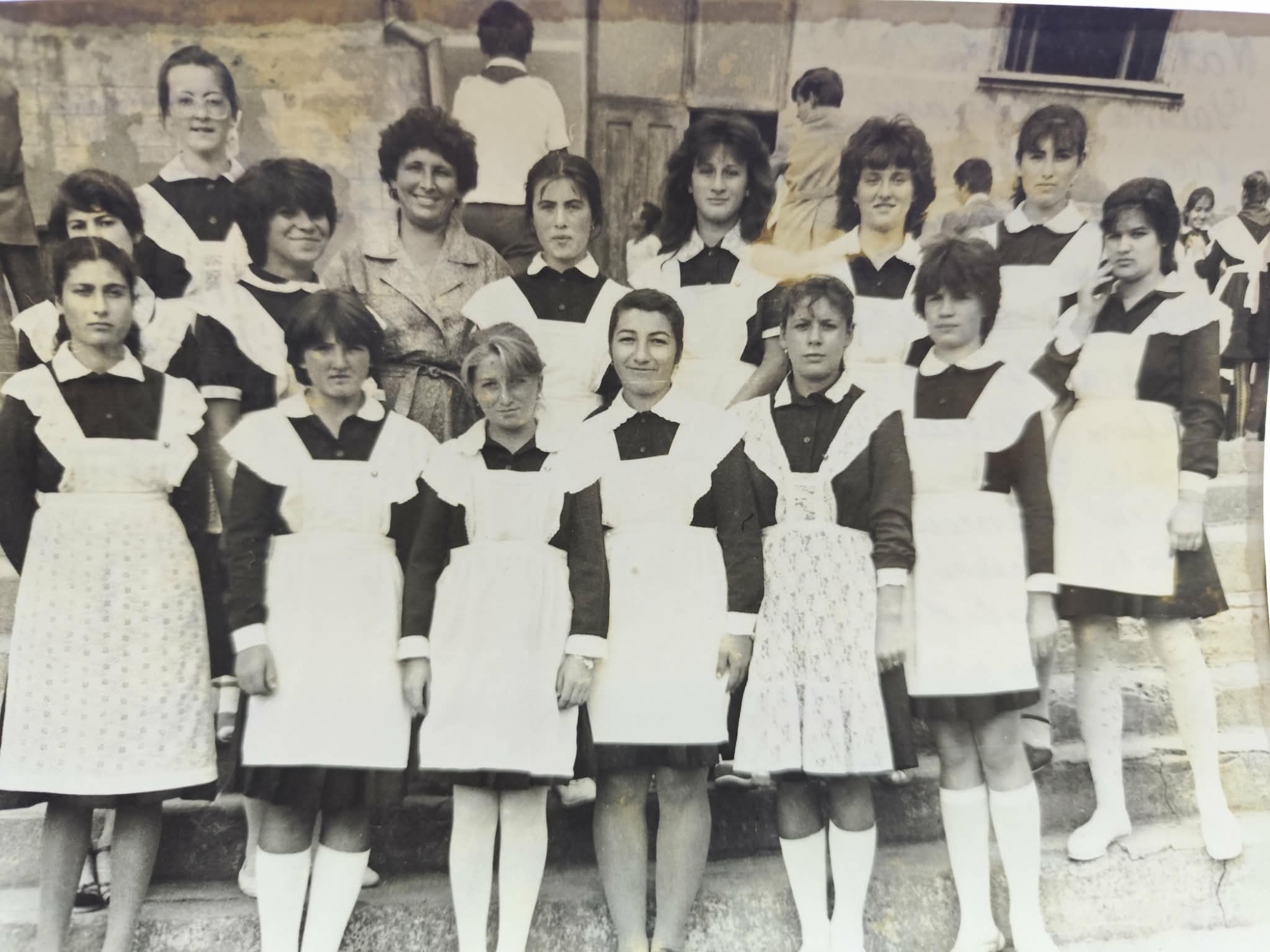 Fotografia alb negru prezintă 14 eleve dispuse pe trei rânduri de trepte. De la stînga la dreapta acestea sunt Natalia Coteț, Galina Visterian, Dobre Vica, Plăcintă Maria , Paulina Valache, Veronica Căpățînă, Valerica Gîrneț, Galina Grecu, , Elena tonciu, ,Valentina Vancea, Svetlana Jurcă, Palade Tatiana, Valentina Bularu, Lilia Brînză. În partea stângă, la mijloc, se află dna grișco Zinaida, diriginta clasei, cu părul scurt și buclat, purtând o jachetă de culoare deschisă. În spate se observă clădirea Școlii Medii din Slobozia Mare, cu o ușă masivă din lemn și ferestre înalte. Elementul cel mai distinctiv al fotografiei este uniforma școlară, formată din rochia de culoare închisă cu mâneci lungi și guler alb, ascuțit, iar deasupra fetele poartă șorțuri albe, unele fiind simple, altele prezentând modele din dantelă, acestea find purtate la sărbători. În picioare majoritatea fetelor poartă ciorapi lungi de culoare albă și sandale. Predomină părul tapat, bretonul și tunsorile de lungime medie, tipice modei anilor '80.