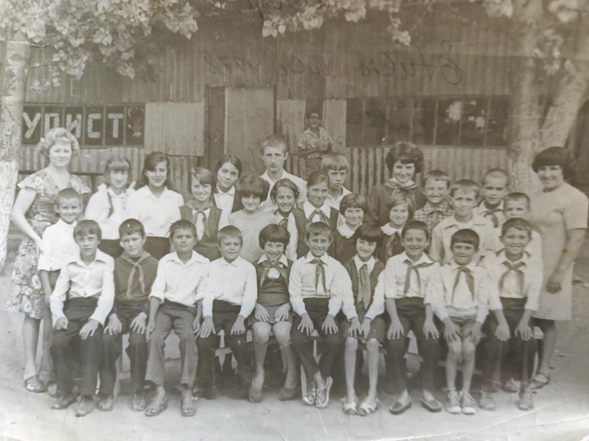 În fotografia alb negru apar aproximativ 25 de copii din clasa a VI-a a Școlii Medii din Slobozia Mare, însoțiți de două femei adulte, învățătoare, cea din dreapta fiind Grișco Zinaida. Grupul este organizat pe trei rânduri: un rând așezat pe o bancă în față și două rânduri în picioare în spate. În partea stângă, o învățătoare cu părul blond, ondulat, poartă o rochie cu imprimeu floral. În partea dreaptă, dna Grișco Zinaida poartă o rochie simplă, deschisă la culoare, cu o tunsoare scurtă, tipică anilor '70-'80. Majoritatea copiilor poartă cravate distinctive înnodate la gât, specific pionerilor, un simbol al organizațiilor de tineret din blocul estic. Băieții poartă în general cămăși albe cu mânecă lungă sau scurtă și pantaloni de culoare închisă. Fetele poartă cămăși/bluze albe, unele având sarafane sau fuste închise la culoare. Se observă, de asemenea, accesorii precum bentițe sau fundițe în păr. Fotografia a fost făcută la lagăturl pioneresc din Etulia, RSSM.