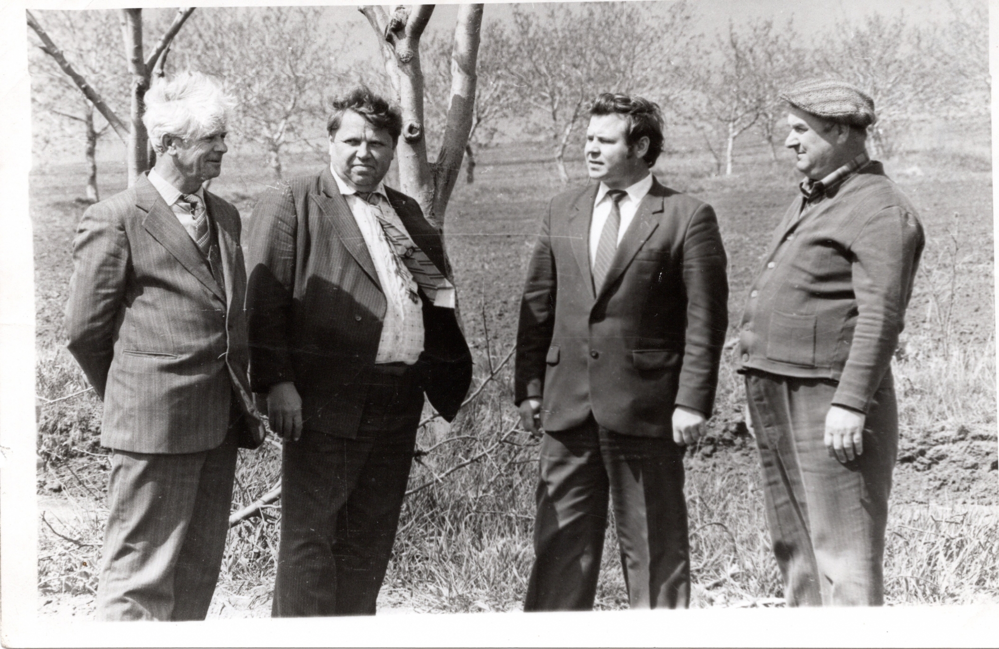 În această fotografie este reprezentată o întâlnire în livada colhozului