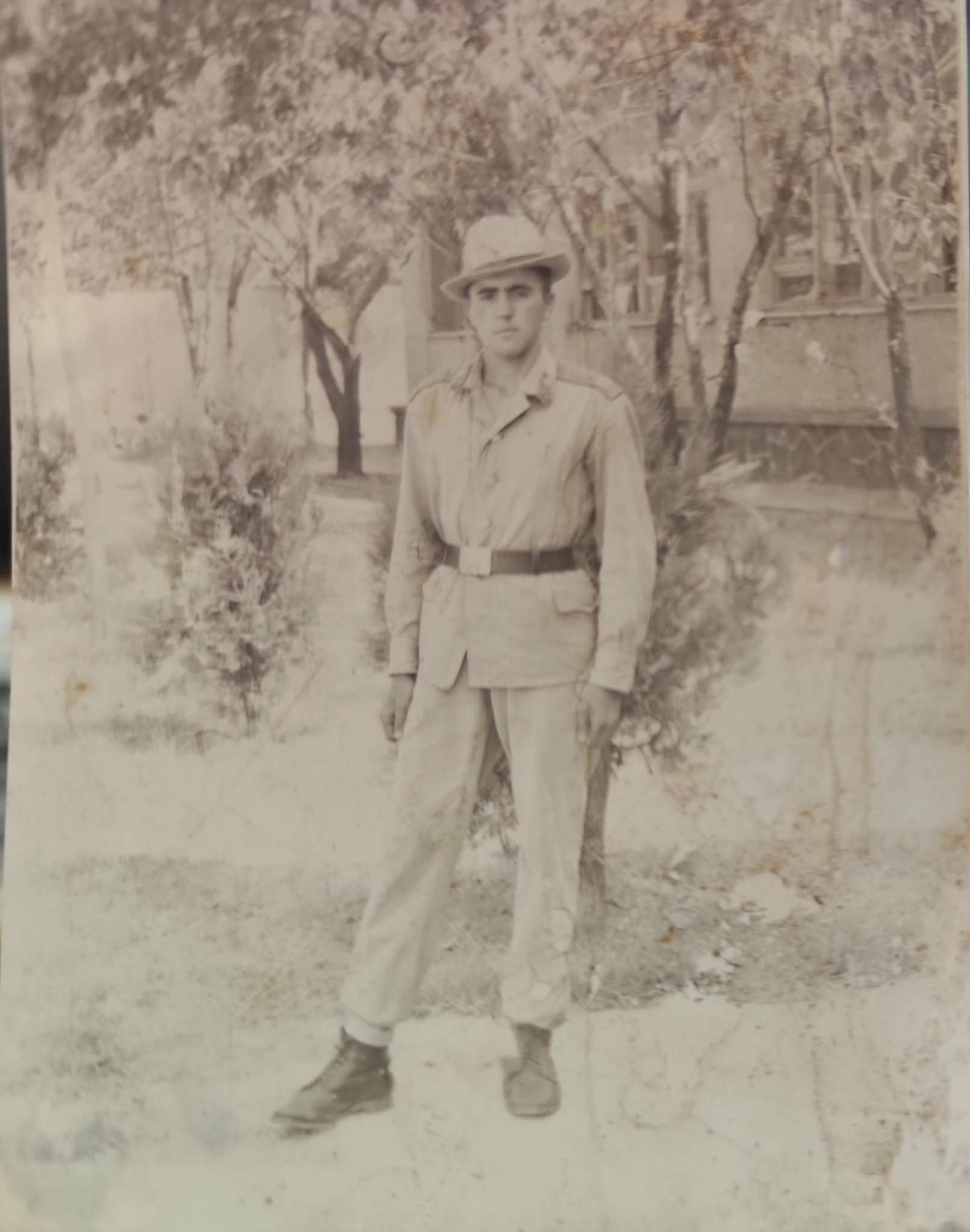 În centrul fotografiei alb negru se află Nicolae Trifan, cu o expresie serioasă și hotărâtă. Acesta stă în picioare, cu corpul orientat ușor spre stânga privitorului, dar cu privirea îndreptată direct spre cameră. Brațele sunt lăsate pe lângă corp, iar picioarele sunt ușor depărtate, conferind o alură de încredere și disciplină. Nicolae Trifan poartă o uniformă militară de vară, formată dintr-o tunică cu mâneci lungi și pantaloni asortați. Tunica are buzunare aplicate pe piept și este strânsă în talie cu o curea lată, prevăzută cu o cataramă metalică vizibilă. Pe cap poartă o pălărie cu boruri relativ scurte ( o pălărie de campanie specifică anumitor regiuni calde/serviciului militar din acea epocă). În picioare are bocanci militari robuști, de culoare închisă, care par a fi prăfuiți, sugerând un mediu de serviciu militar. Fotografia este făcută în curtea unei unități militare. În spatele acestuia se observă câțiva arbuști ornamentali și copaci cu frunziș bogat. Nicolae Trifan a luptat în Afganistan, întorcîndu-se din păcate în sicriu, cu puțin timp înainte de a finisa serviciul militar.