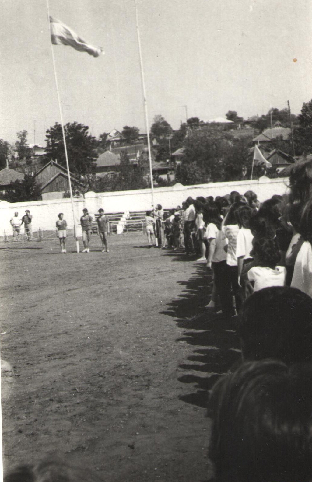 На фотографии изображено спортивное соревнование жителей города Тараклии. Фотография выполнена в черно-белом цвете. Фотография — это изображение, созданное с помощью фотоаппарата, где световые лучи фиксируются на светочувствительной поверхности или в цифровом виде для получения визуального отображения объекта или сцены.