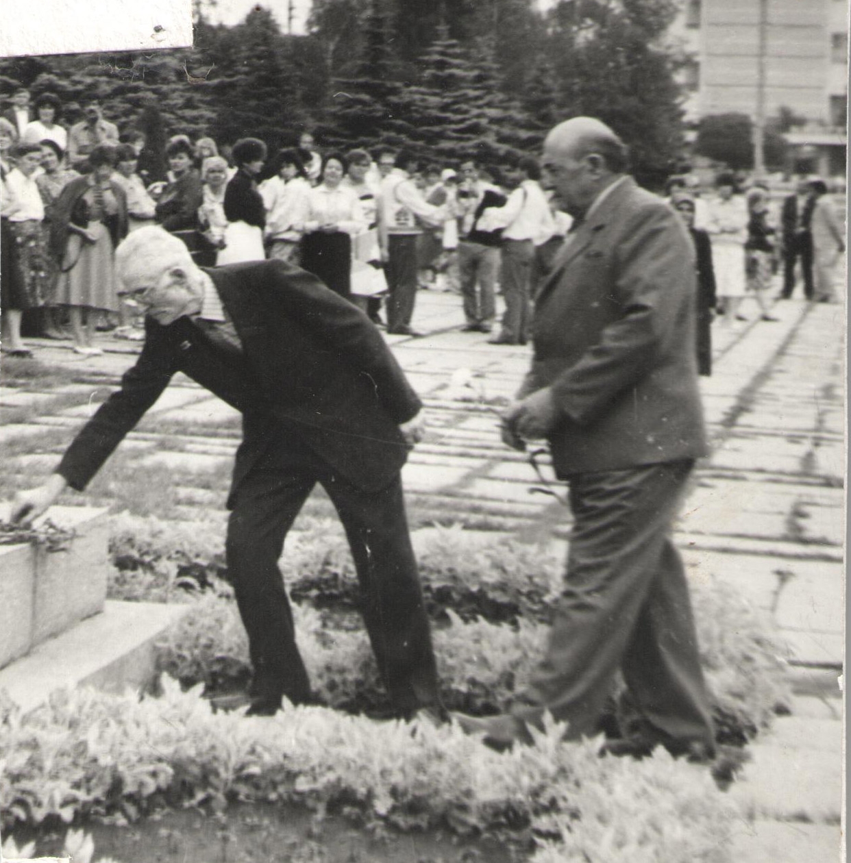 На фотографии изображено возложение цветов великого революционера Олимпий Панов . Фотография выполнена в черно-белом цвете. Фотография — это изображение, созданное с помощью фотоаппарата, где световые лучи фиксируются на светочувствительной поверхности или в цифровом виде для получения визуального отображения объекта или сцены.