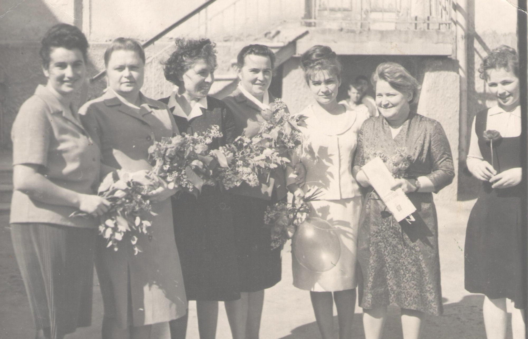 На фотографии изображены педагоги школы №2 города Тараклии . Фотография выполнена в черно-белом цвете. Фотография — это изображение, созданное с помощью фотоаппарата, где световые лучи фиксируются на светочувствительной поверхности или в цифровом виде для получения визуального отображения объекта или сцены.