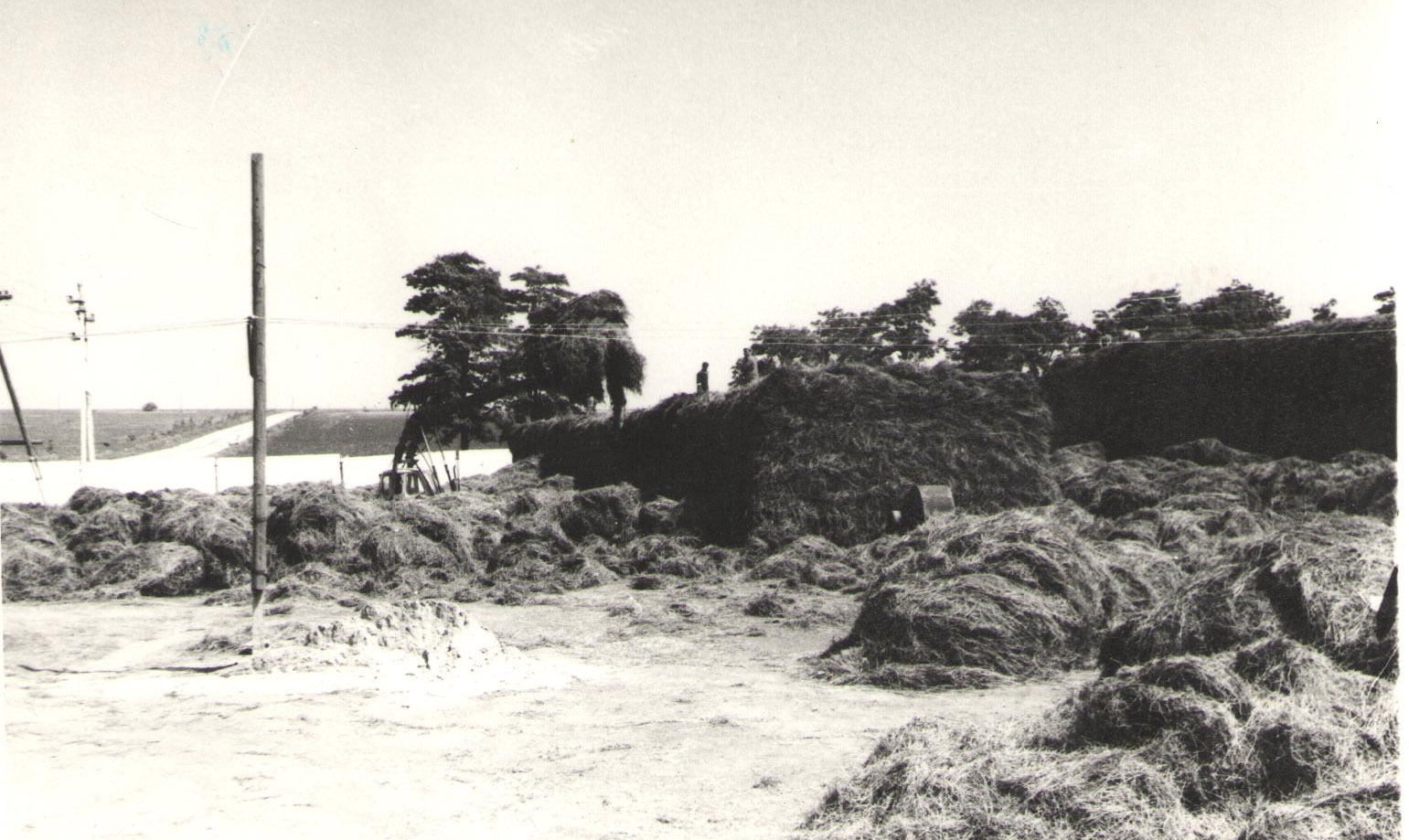 На фотографии изображены рабочие на сенохранилище в колхозе Родина . Данный предмет принесли в дар из архива колхоза Родина Фотография выполнена в черно-белом цвете. Фотография — это изображение, созданное с помощью фотоаппарата, где световые лучи фиксируются на светочувствительной поверхности или в цифровом виде для получения визуального отображения объекта или сцены