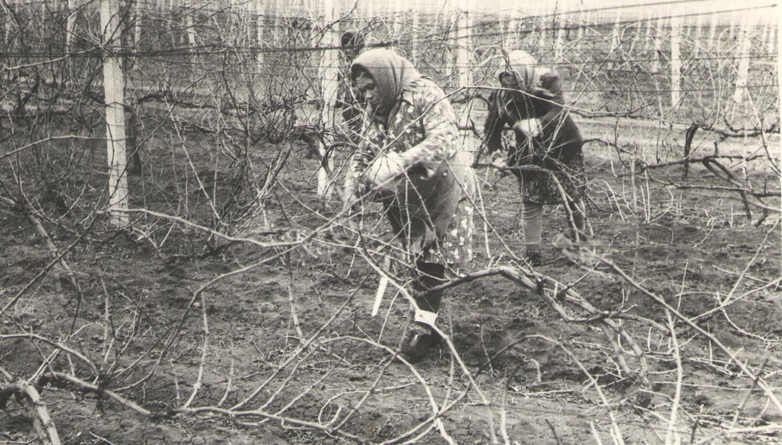 На фотографии изображены рабочие-обрезка винограда на полях в колхозе Родина . Данный предмет принес в дар Кайряк Михаил Семенович из личного архива. Фотография выполнена в черно-белом цвете. Фотография — это изображение, созданное с помощью фотоаппарата, где световые лучи фиксируются на светочувствительной поверхности или в цифровом виде для получения визуального отображения объекта или сцены