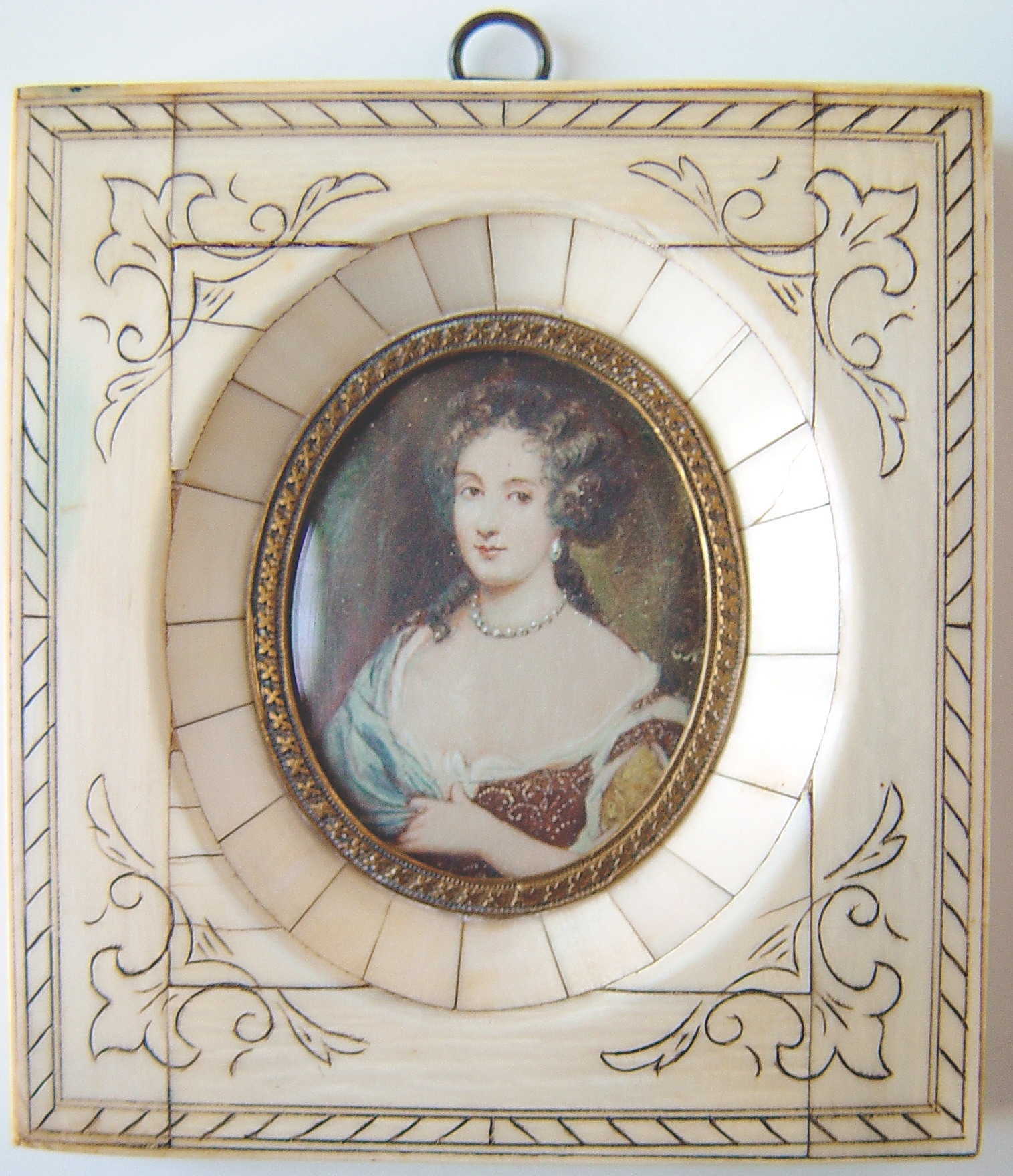 În oval este reprezentată frontal, bust, o doamnă în rochie decoltată castanie, cu dantelă albă. Pe umărul drept - eşarfă albastră. Pieptănătură strânsă la spate, cercei, la gât salbă. Fundal - peisaj. În dreapta - monograma „C. N”. În ramă, sub sticlă.