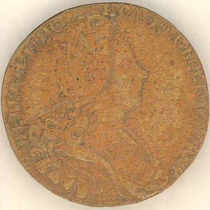 rotund cu muchie netedă. Avers: bust de bărbat încununat cu lauri văzut în profil drp - efigia lui Petru II, în jurul valorii - inscripții. Revers: la centru într-un cerc concentric - un număr conturat de motiv alternant floral și punctiform.