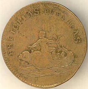 rotund cu muchie striată. Avers: bust de bărbat cu păr lung adunat la spate, în profil stg (Louis XVI); în jurul valorii - inscripții. Revers: figura unui băiețel nud pe un pește; sus în arc de cerc - inscripții.