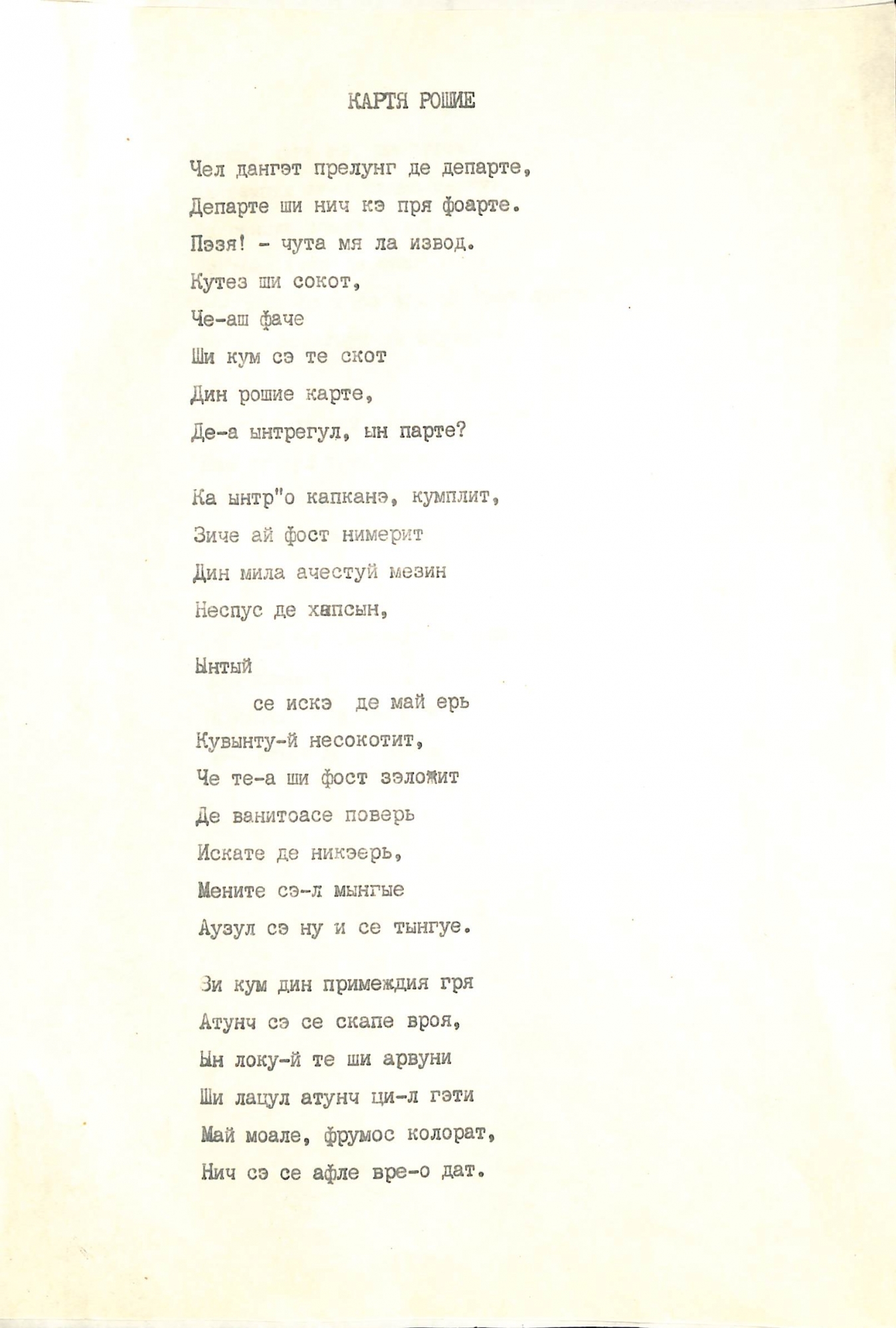 Manuscris dactilografiat. Poezia „Cartea roșie”