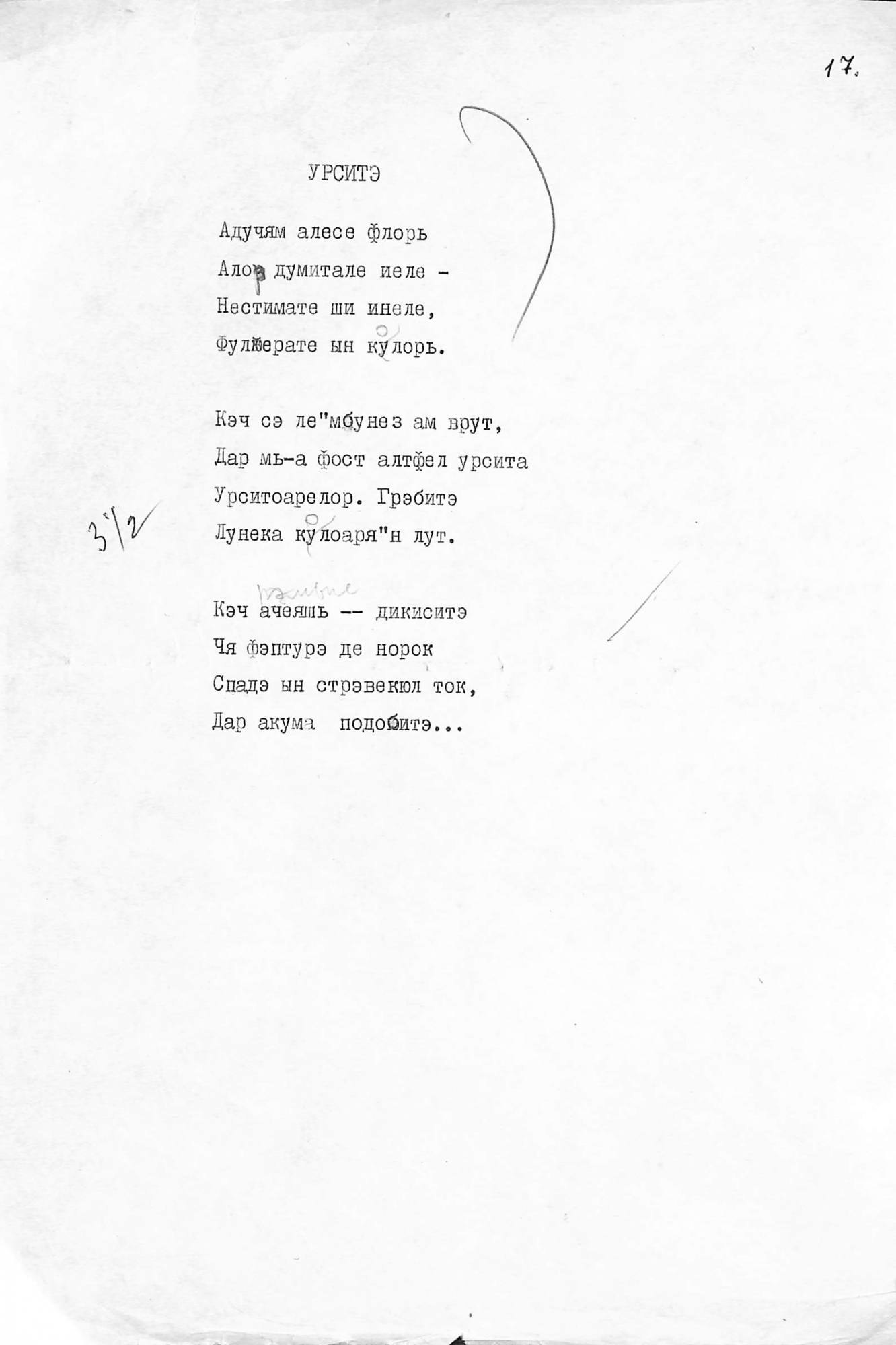 Manuscris dactilografiat. Poezia „Ursită”
