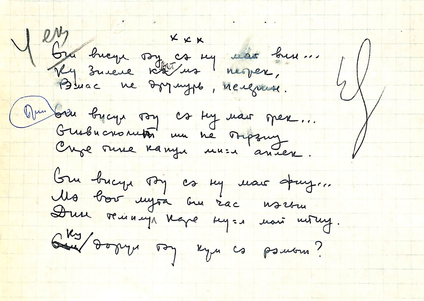 Boțu, Pavel. Manuscris olograf. Poezie fără titlu: „În visul tău să nu mai vin...” este inserată pe un fragment de pagină de hârtie în pătrățele și cuprinde trei strofe. Manuscrisul olograf este scris în limba română cu caractere chirilice cu stilou în cerneală neagră. Fără datare.