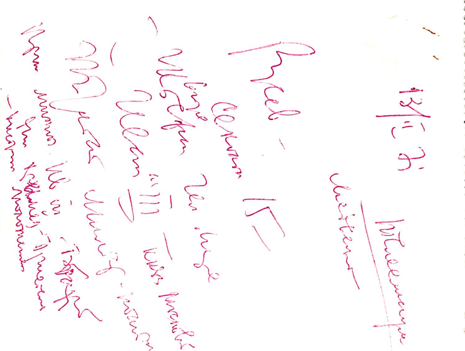 Boțu, Pavel. Manuscris olograf. Manuscrisul cuprinde însemnări, notițe varia scrise olograf pe pagini de carnet, scris ilizibil cu stilou în culoare roșie. Coperta anterioară și posterioară a carnetului lipsește. Pe prima pagină sus este scris olograf cu stilou în culoare roșie: „13/ II. 71”.