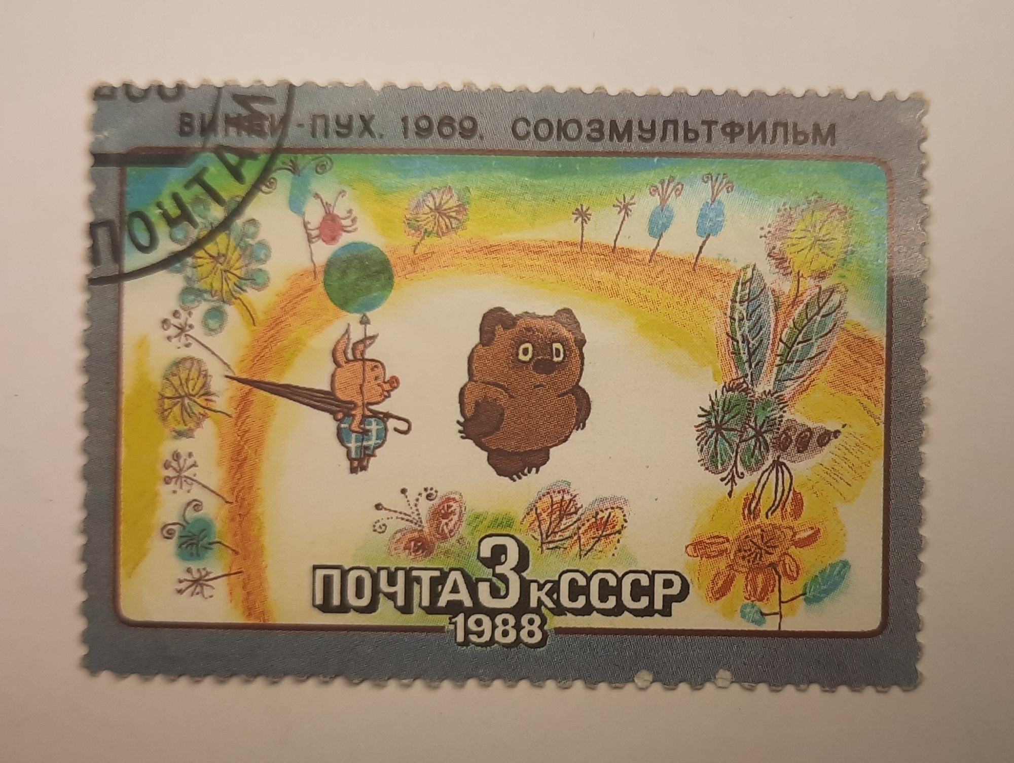 Pe marca poștală este reprezentată o imagine din desenul animat ”Винни-пух”, dedesubt scrie ”ПОЧТА3кСССР”, mai jos anul emiterii ”1988”. Sus, este indicat ”ВИННИ-ПУХ. 1969. СОЮЗМУЛЬТФИЛЬМ”.