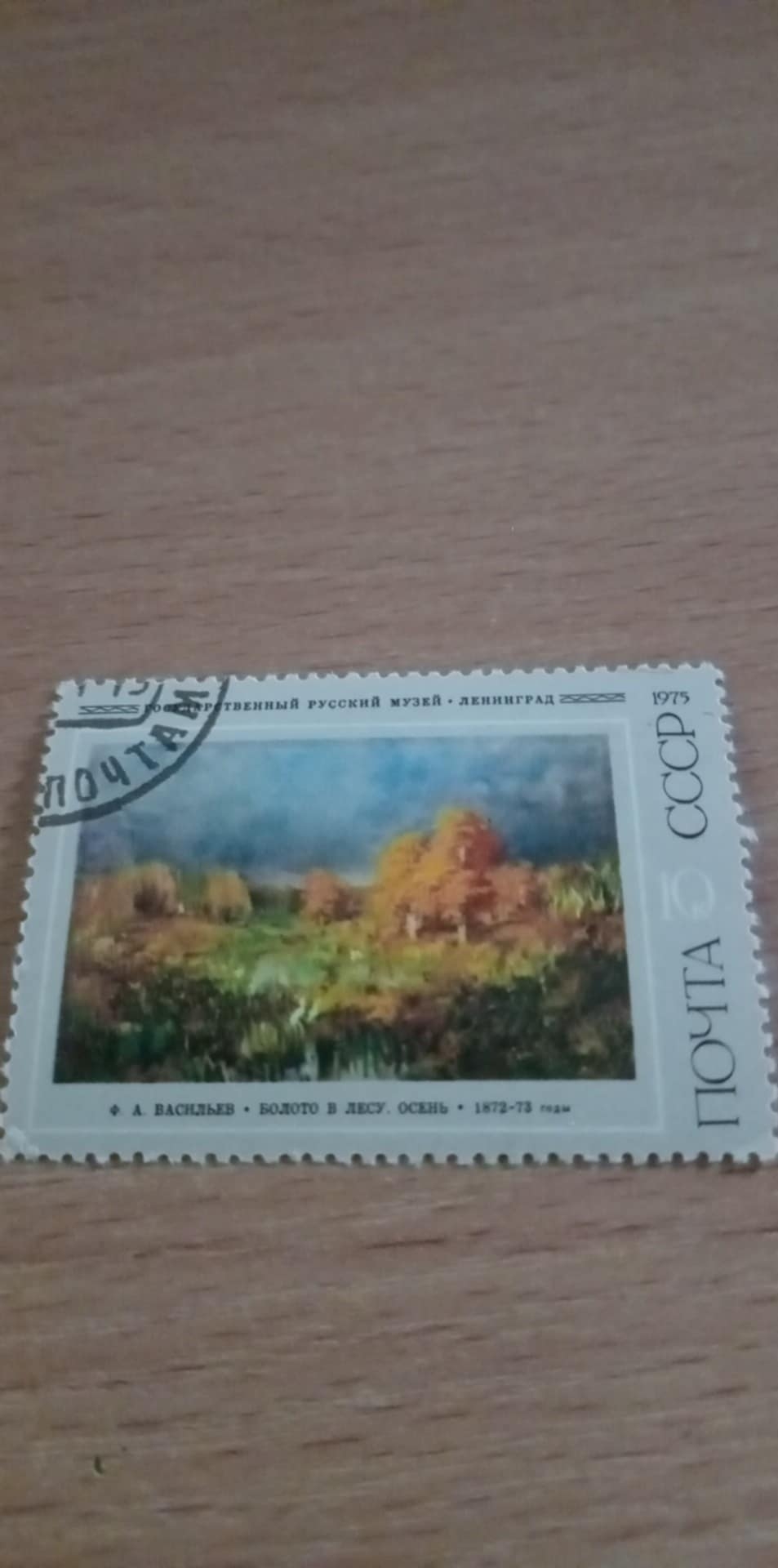 Timbru poștal - „Baltă în pădure. Toamnă” – autor Fiodor Aleksandrovici Vasilyev, pictor peisagist rus (1850–1873)