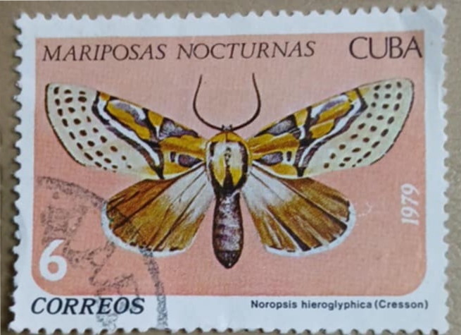 Timbrul emis de Cuba în 1979, cu valoarea de 6 centavos, ilustrează un fluture de noapte din specia Noropsis heiroglyphica (Cresson), prezentat cu aripile desfăcute pe un fundal clar. Face parte din seria „Mariposas Nocturnas”, dedicată faunei entomologice nocturne.